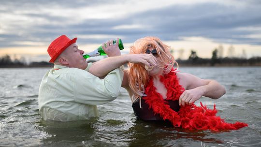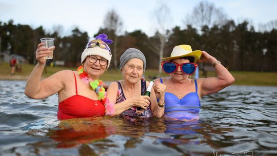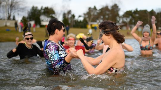Tym razem Nowy Rok w lodowatej wodzie powitało ponad 30 osób. Morsy i foczki, pijąc zmrożonego szampana w sylwestrowej stylizacji, nawiązały tym samym do swojej wieloletniej tradycji.