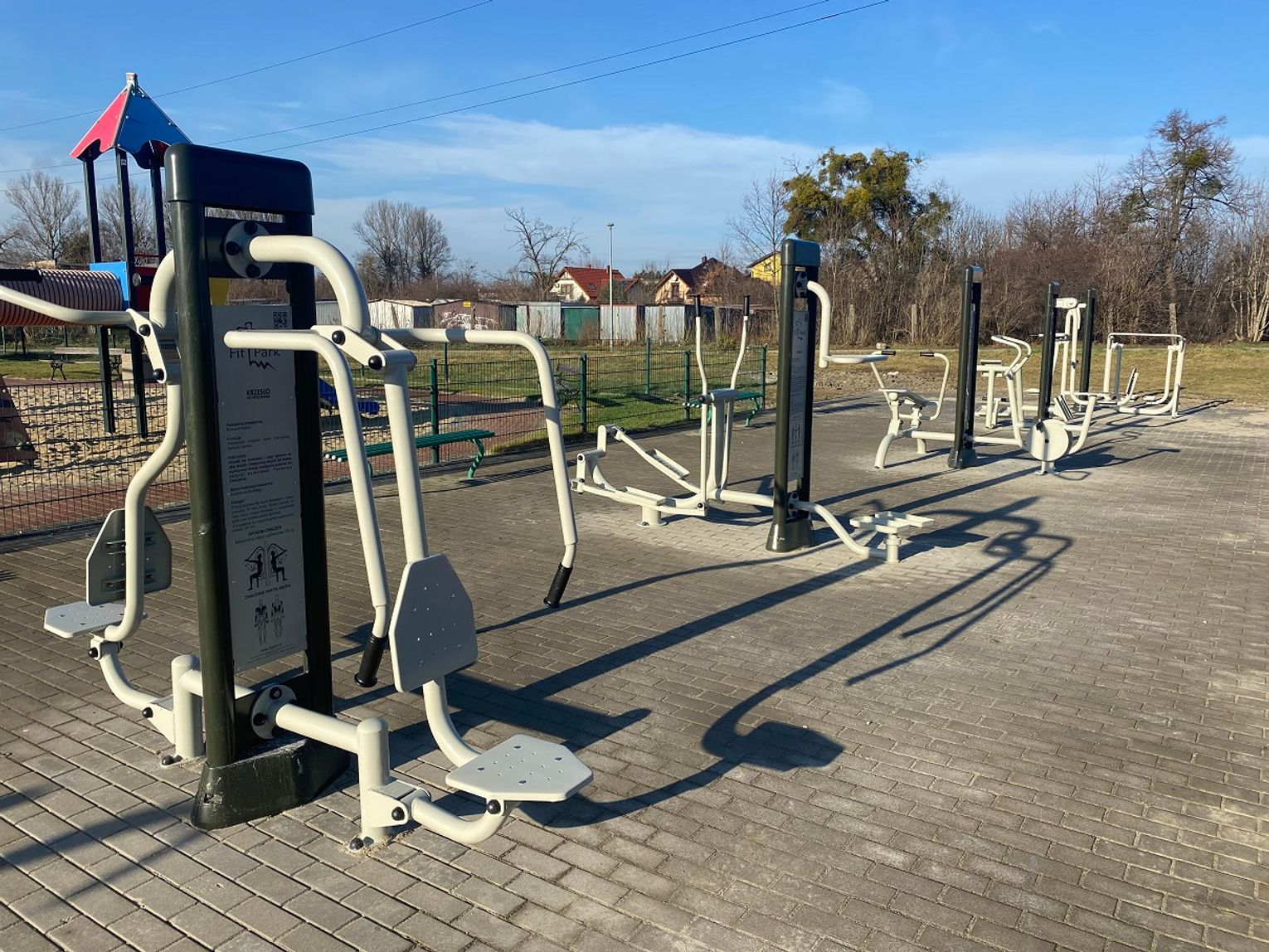 Miłośnicy aktywności na świeżym powietrzu mogą skorzystać m.in. z rowerku, twistera, drążków do podciągania, wioślarza czy biegacza. W bezpośrednim sąsiedztwie znajduje się też boisko wielofunkcyjne.