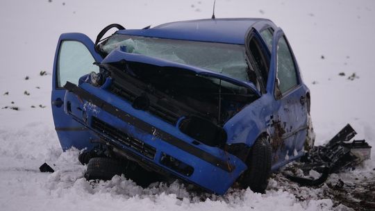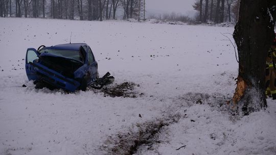 Samochód wypadł z drogi, uderzył w drzewo i zakończył jazdę koziołkowaniem w polu. Na miejscu interweniowały wszystkie służby ratunkowe.