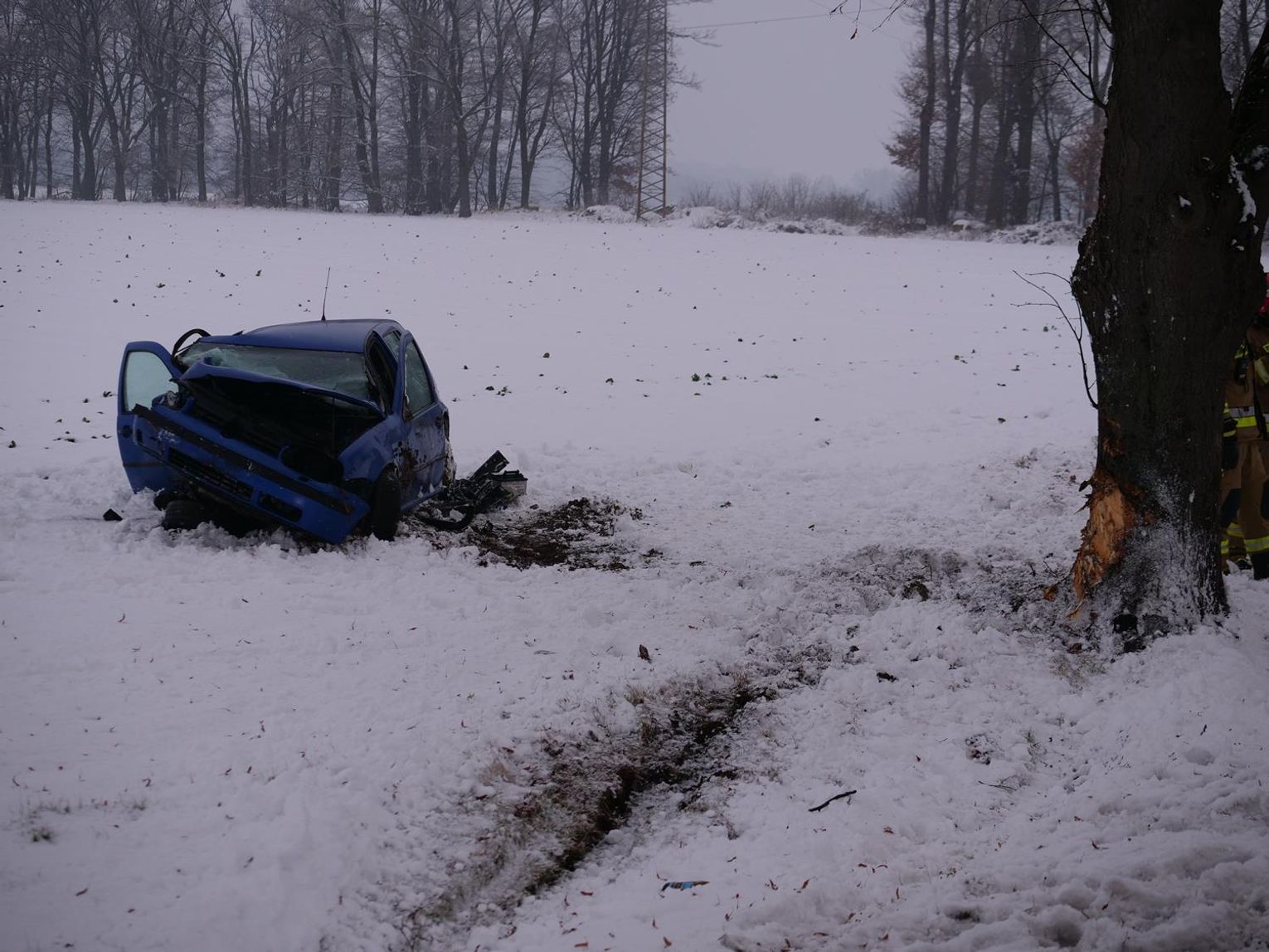 Zdarzenie miało miejsce w niedzielę, 22 stycznia chwilę po godzinie 15 na drodze krajowej nr 38 pomiędzy Łężcami a Bytkowem. Jak udało się ustalić, kierująca osobowym volkswagenem jadąc od strony Pawłowiczek w kierunku Reńskiej Wsi straciła panowanie nad pojazdem, zahaczyła o śliskie pobocze i zjechała na przeciwległy pas, następnie uderzyła w drzewo. Samochód zatrzymał się na boku w polu. Na miejsce zadysponowano trzy zastępy straży pożarnej, zespół ratownictwa medycznego oraz policję. Kobiecie udzielono pomocy medycznej na miejscu. Na czas prowadzonych działań ruch w tym miejscu odbywał się wahadłowo.