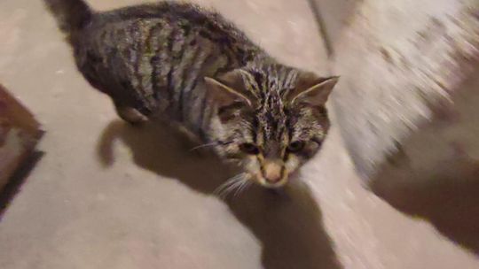 Jak informują mieszkańcy - przesiaduje w piwnicy. Najprawdopodobniej komuś uciekł i nie może znaleźć drogi do domu.