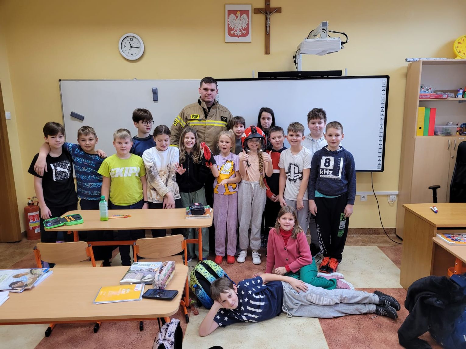 Strażacy z Komendy Powiatowej Państwowej Straży Pożarnej spotkali się dziś z uczniami Zespołu Przedszkolno-Szkolnego w Koźlu Rogach.
