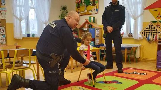 W trakcie spotkań nie brakuje również informacji na temat bezpieczeństwa w ruchu drogowym. Funkcjonariusze wyjaśniają przedszkolakom dlaczego w samochodzie wszyscy muszą mieć zapięte pasy, a dodatkowo dzieci mają obowiązek podróżować w fotelikach. Policjanci przypominają także, jak poprawnie przechodzić przez przejście dla pieszych, którą stroną drogi należy się poruszać, gdy nie ma chodnika i dlaczego warto nosić odblaski.
