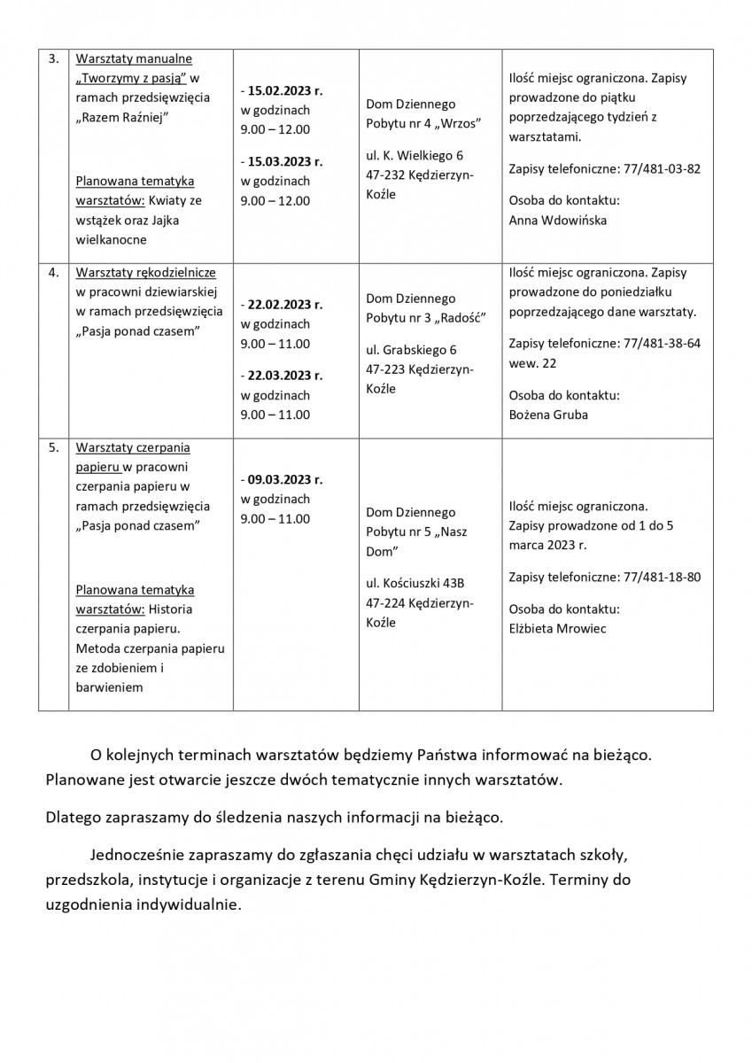 Pełny harmonogram można znaleźć pod linkiem: https://kedzierzynkozle.pl/pl/aktualnosc/odkryj-swoj-talent-razem-z-dugnadem.