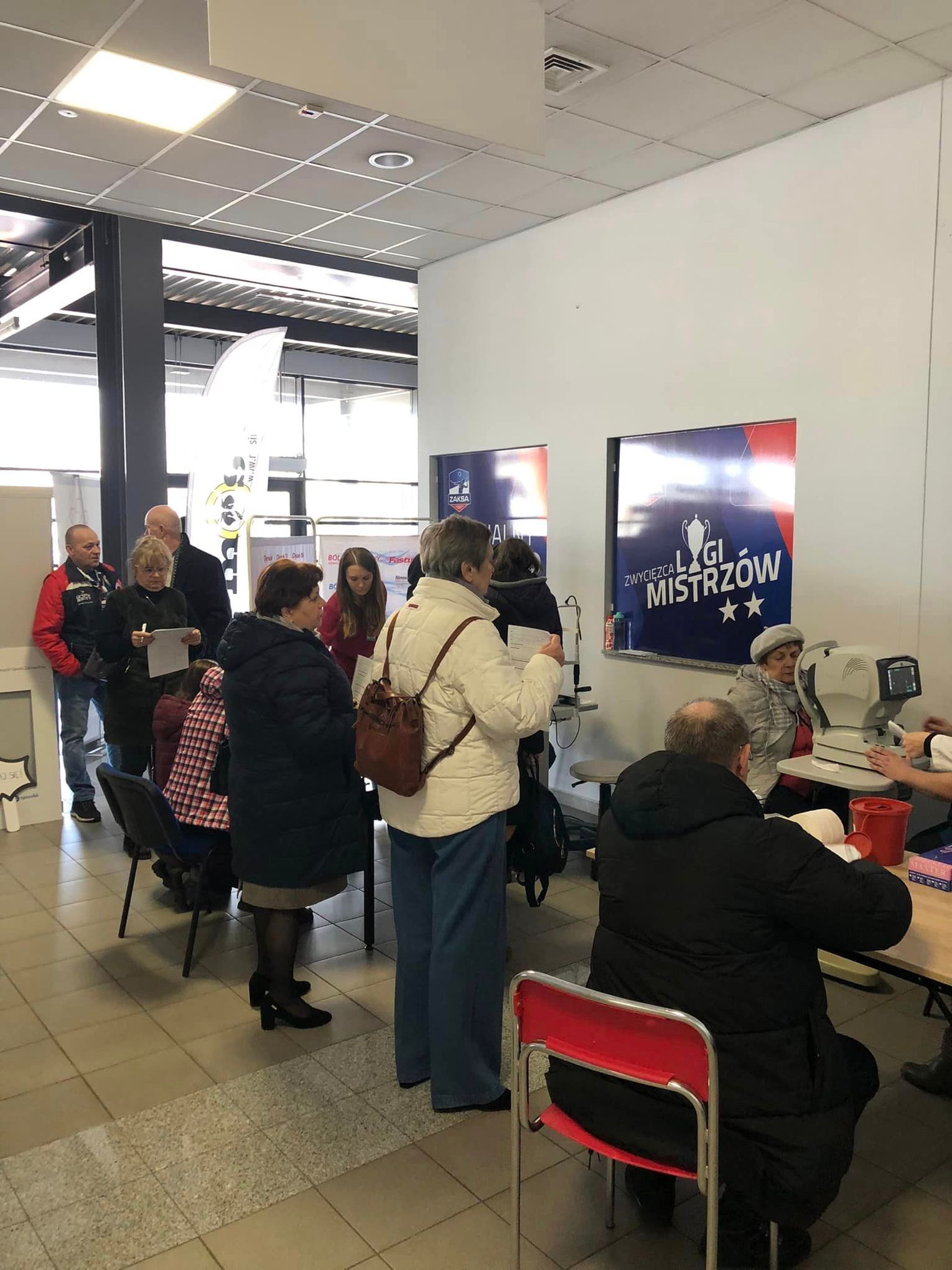 Intensywny początek tegorocznego Światowego Tygodnia Jaskry (12-18.03.2023) miał miejsce w niedzielne popołudnie w hali "Azoty", przy okazji meczu Grupy Azoty ZAKSA Kędzierzyn-Koźle. W tym roku badania profilaktyczne proponujemy dla pacjentów w dwóch odsłonach. Wczoraj przebadano aż 91 osób. Z możliwości badań profilaktycznych skorzystało wielu kibiców i sporo osób, które przyjechały specjalnie na badania. Okazało się, że ok. 40% przebadanych wymaga dalszej konsultacji specjalistycznej u lekarza okulisty. To niespodziewanie spory odsetek osób. Pamiętajmy, jaskry nie da się rozpoznać prostym sposobem, bez specjalistycznych badań.