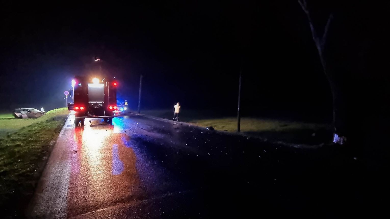 Zgłoszenie do operatora numeru alarmowego wpłynęło w sobotę, 15 kwietnia chwilę po godzinie 23. Na miejsce zadysponowano zespół ratownictwa medycznego, policję oraz straż pożarną. Jak udało się ustalić, samochodem marki renault na raciborskich tablicach rejestracyjnych jadącym w kierunku Kędzierzyna-Koźla podróżowało dwóch młodych mężczyzn w wieku ok. 20 lat. Kierowca z nieustalonych przyczyn uderzył w drzewo, a następnie wjechał do rowu po przeciwnej stronie drogi kilkadziesiąt metrów dalej. W wyniku zdarzenia obaj mężczyźni zostali poszkodowani. Kierowca oraz nieprzytomny pasażer zostali przetransportowani do szpitala. Na miejsce wezwano także policyjnego technika. Na czas prowadzonych działań droga krajowa nr 45 w tym miejscu została całkowicie zablokowana.