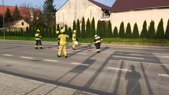 Zastępy straży pożarnej oraz policja zostali zadysponowani na ulicę Kłodnicką, gdzie doszło do wycieku oleju z przejeżdżającego samochodu.