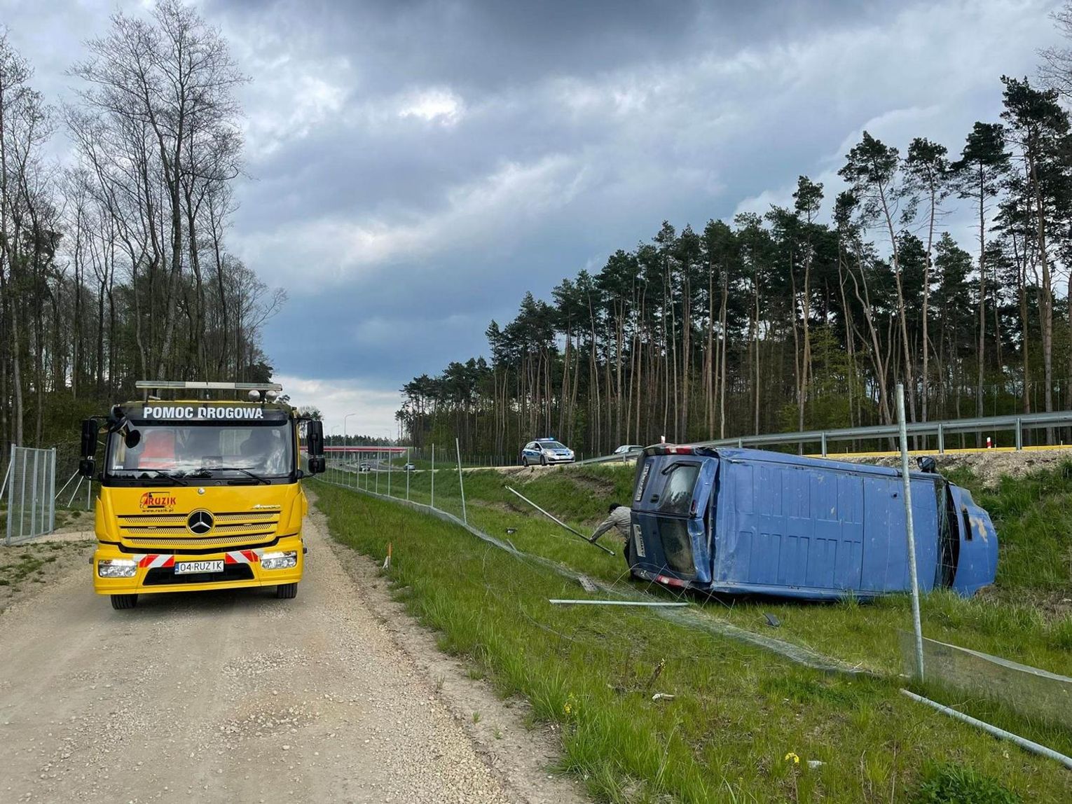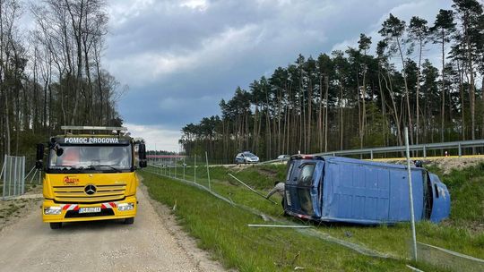 Do groźnie wyglądającego zdarzenia z udziałem samochodu dostawczego doszło na nowym odcinku obwodnicy Kędzierzyna-Koźla.