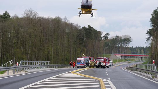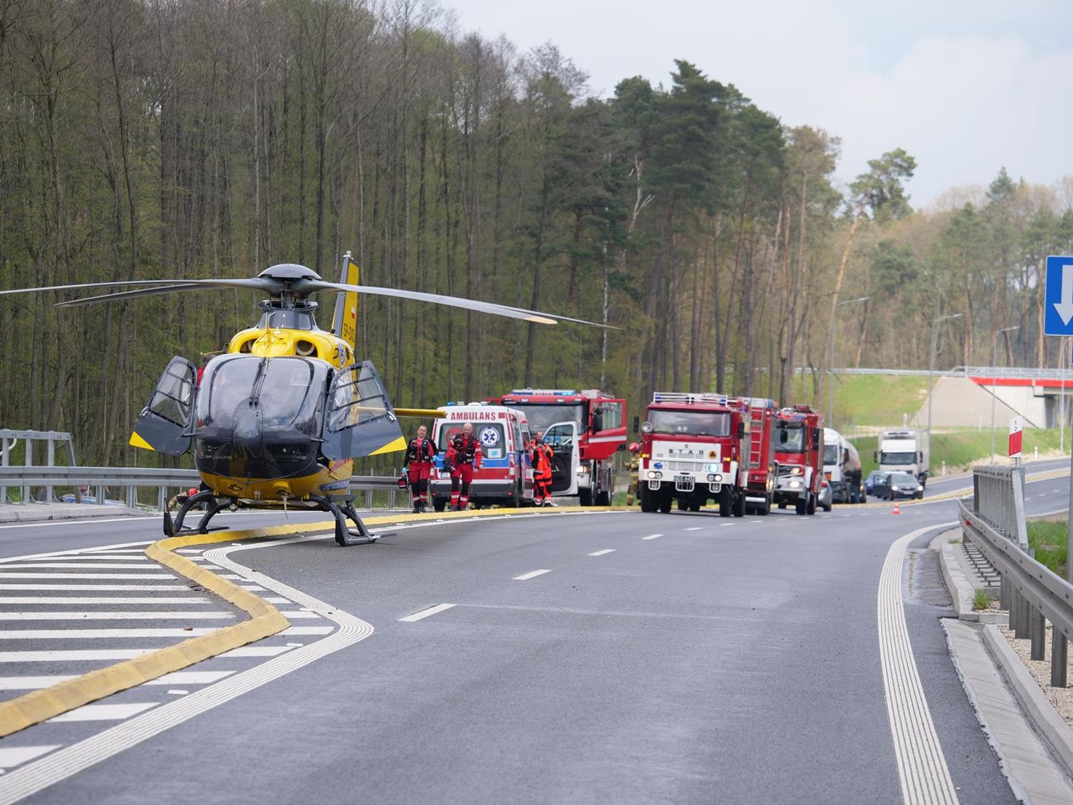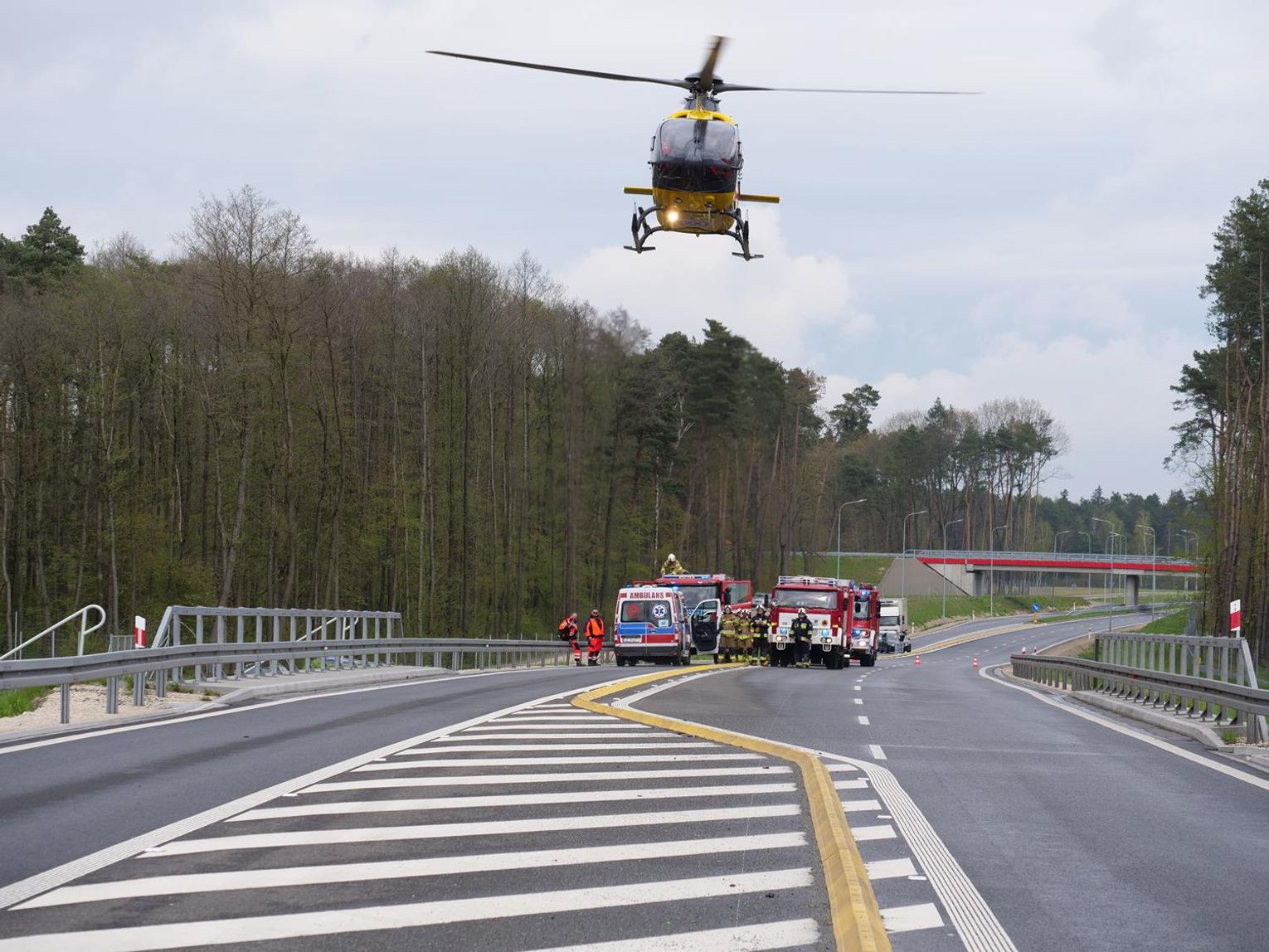 Dostawczy bus spadł ze skarpy. Na miejscu lądował śmigłowiec LPR