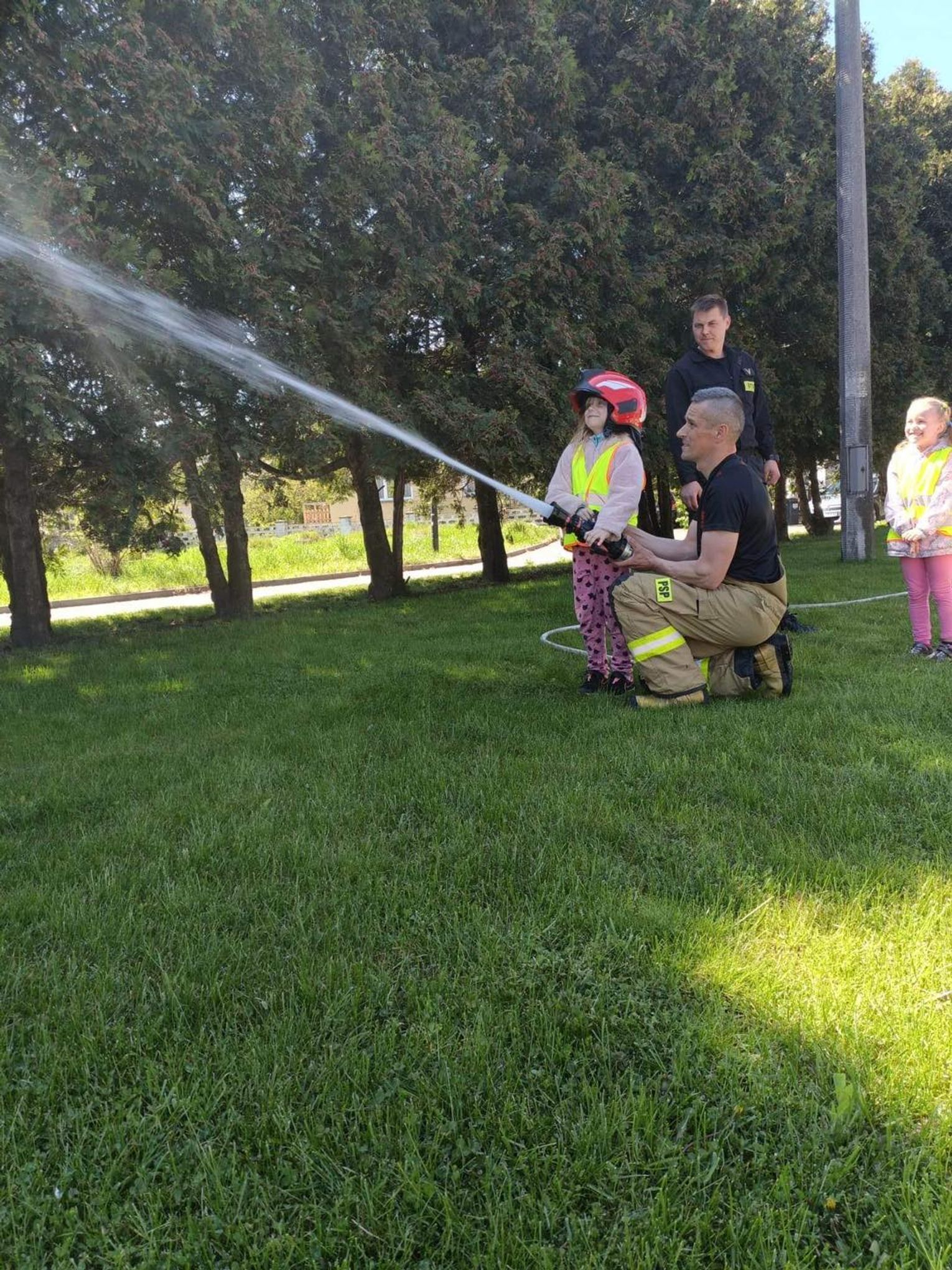 Przedszkolaki w trakcie spotkania poznały wyposażenie wozów strażackich i sprzęt jaki używa strażak podczas akcji ratunkowych. Oprócz poznania tajników pracy strażaka przedszkolaki zdobyły bardzo cenną wiedzę na temat zasad bezpieczeństwa, dowiedziały się jak należy zachować się w trakcie zagrożenia i utrwaliły numery alarmowe do straży pożarnej.