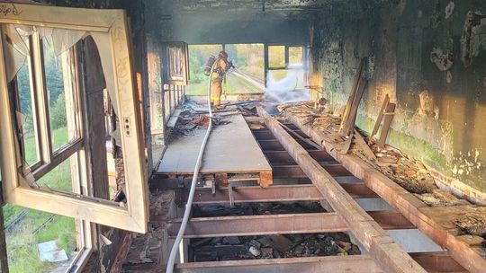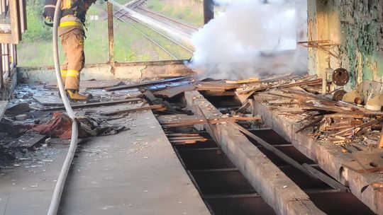 Pożar pustostanu byłej nastawni kolejowej na osiedlu Żabieniec