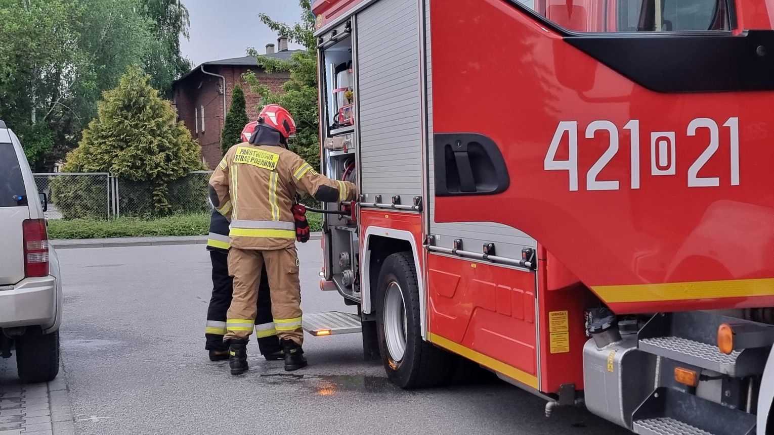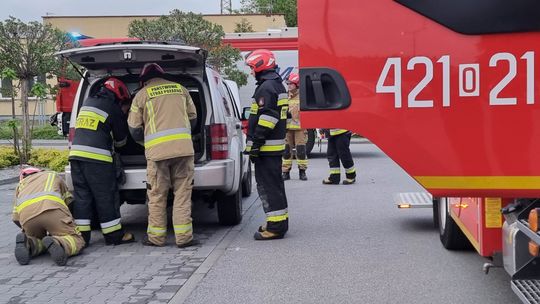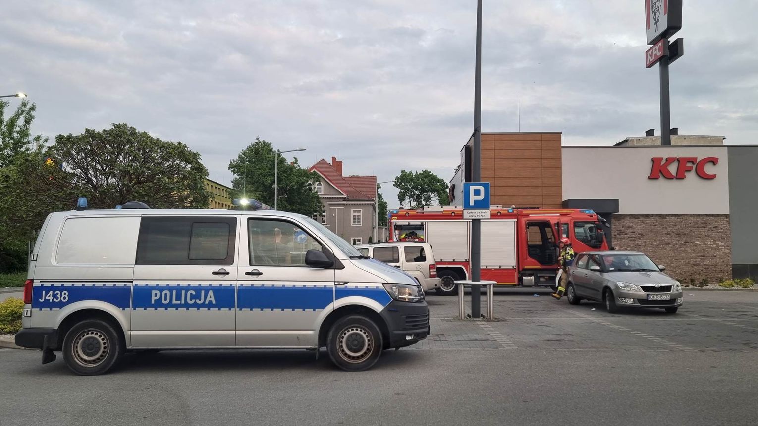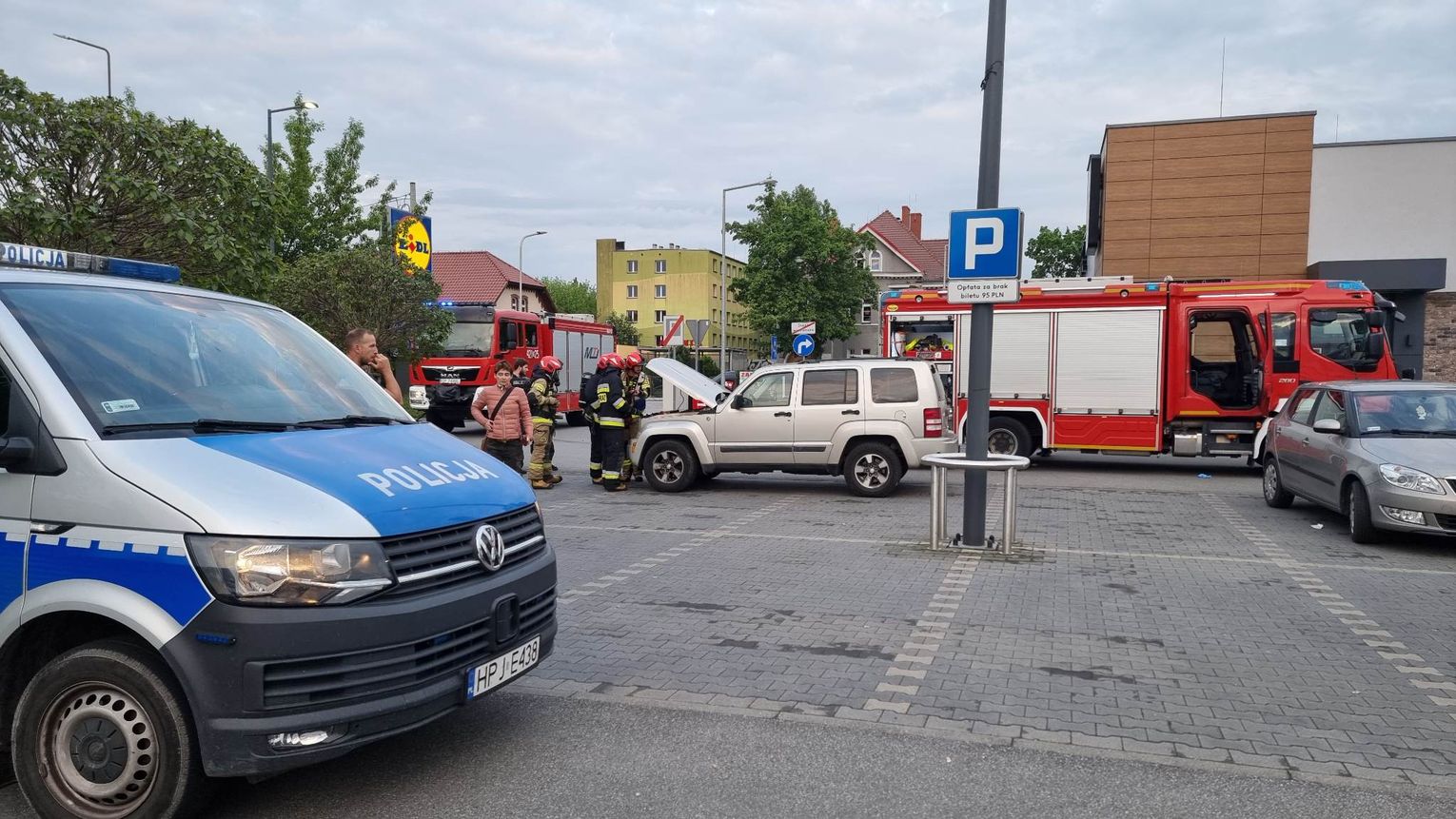 Dwa zastępy straży pożarnej oraz patrol policji interweniowali na parkingu marketu przy ulicy Kozielskiej na osiedlu Pogorzelec.