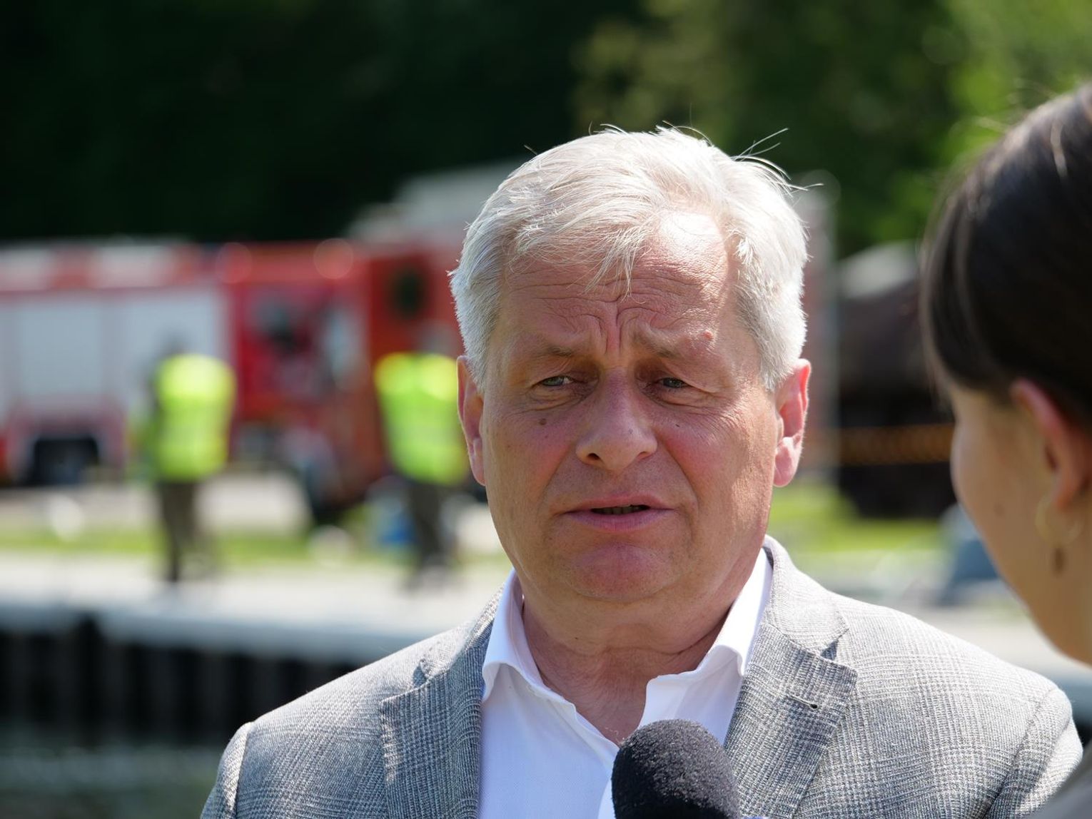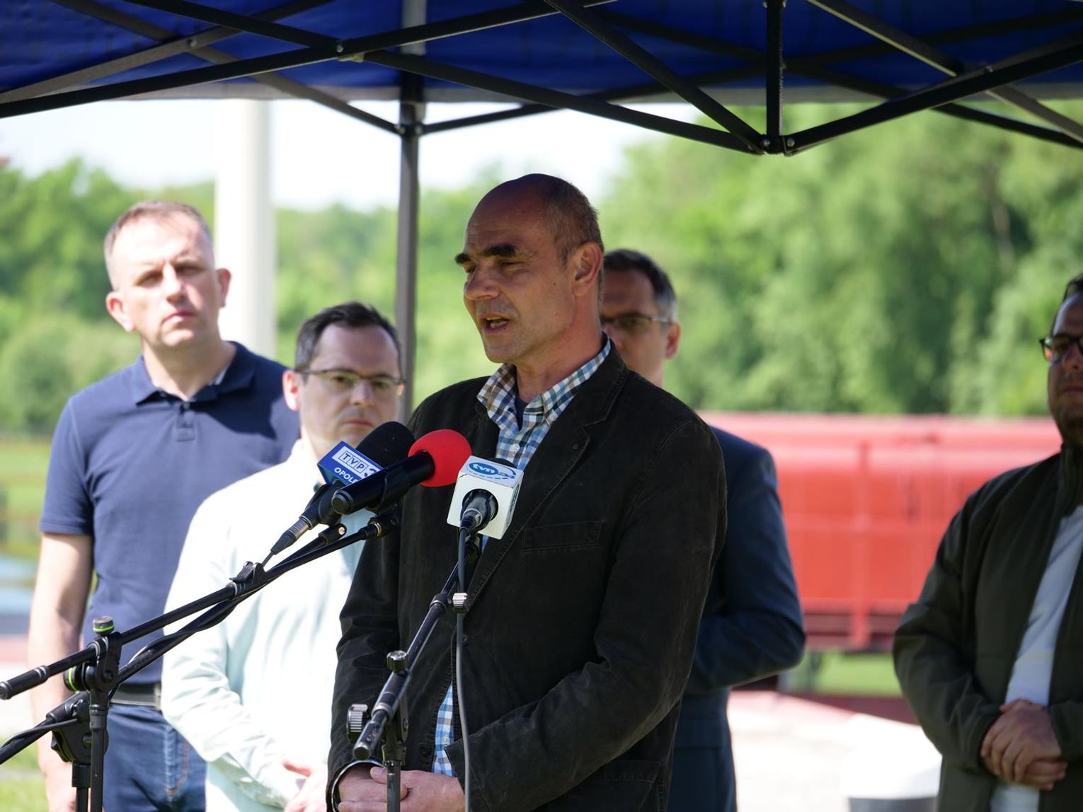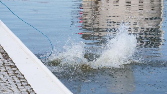 - Cieszę się bardzo, że te działania zaczęły się w województwie Opolskim. Od godziny 6 rano woda była mieszana przez kilka pomp po to, aby stworzyć jak najlepsze warunki do użytego tutaj środka, czyli rozcieńczonej wody utlenionej. Chciałbym uspokoić, że środek nie jest w żaden sposób niebezpieczny dla środowiska, ani dla ludzi. Groźny jest dla złotej algi, a przynajmniej taką mamy nadzieję. Chciałbym, aby to nie był tylko eksperyment, a skuteczne działanie - powiedział wojewoda opolski Sławomir Kłosowski.