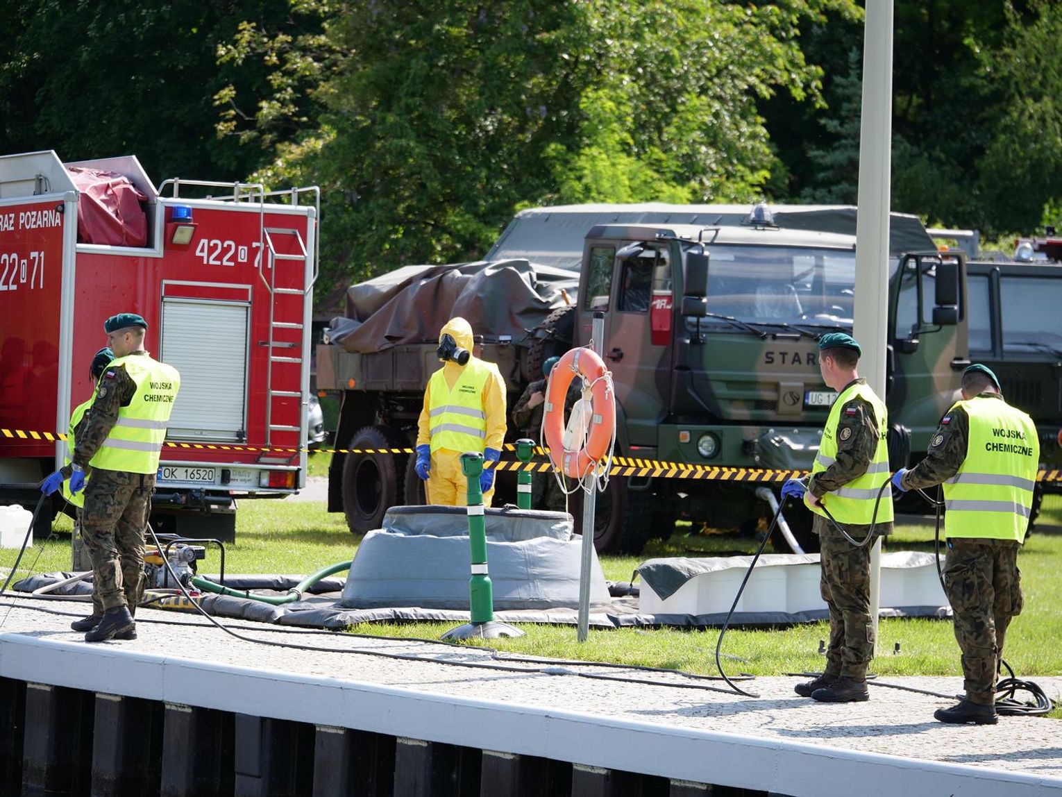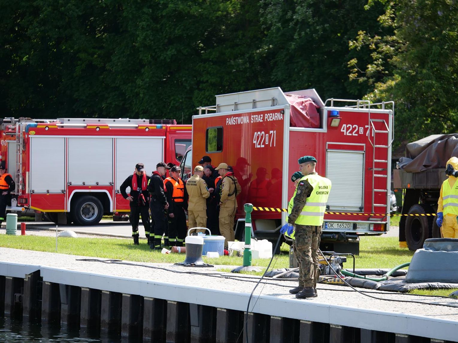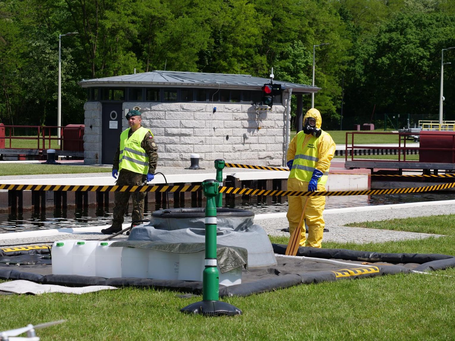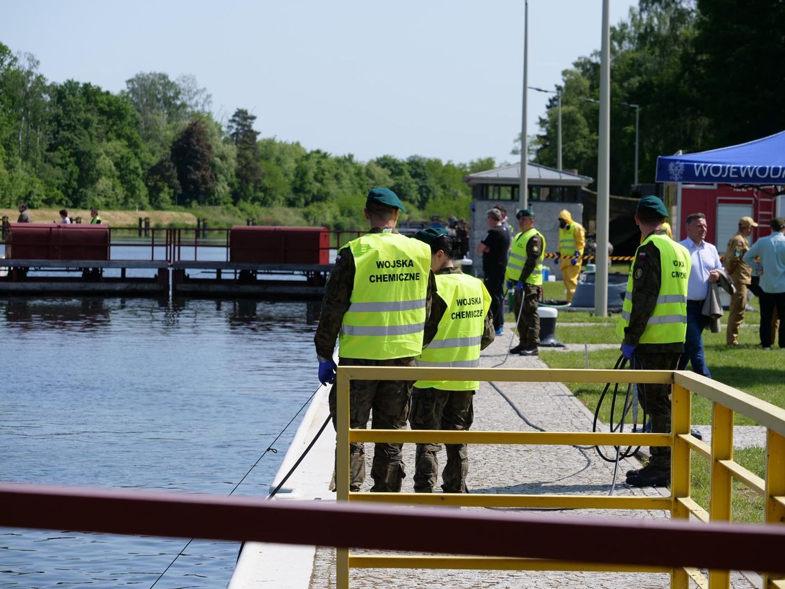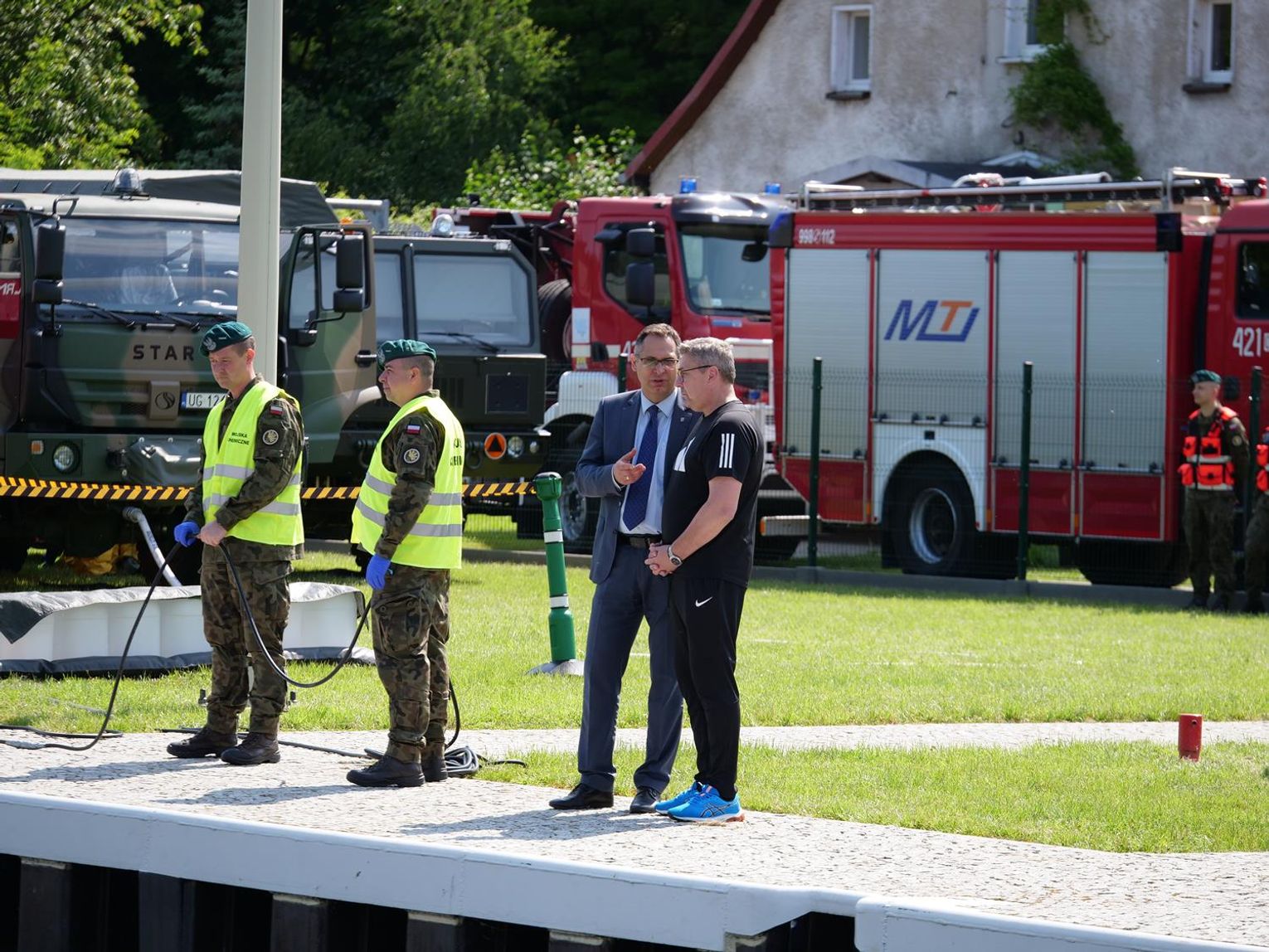 Po konferencji zastępy Państwowej Straży Pożarnej oraz Wojsko Chemiczne udali się na śluzę Nowa Wieś, gdzie zamontowane zostały pompy. Jutro dokonane zostaną pomiary takie, jak w Sławięcicach oraz zostanie dodany do wody koagulant - nieco inny środek, niż w Sławięcicach. Samo mieszanie wody też przebiegnie w nieco inny sposób, aby sprawdzić, która metoda jest lepsza. Obie śluzy mają niemalże identyczne parametry i objętość wody w komorze.