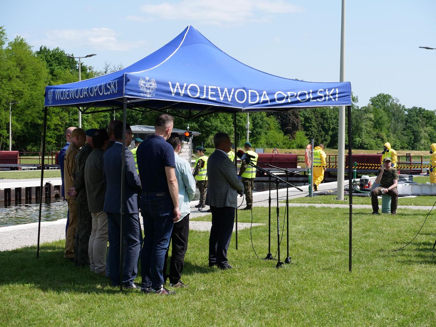 W poniedziałek, 29 maja przy śluzie Sławięcice odbyła się konferencja prasowa, w której udział wzięli m.in.: wojewoda opolski Sławomir Kłosowski, Generalny Dyrektor Ochrony Środowiska Andrzej Szweda-Lewandowski oraz jego zastępca Marek Kajs, Główny Inspektor Ochrony Środowiska Krzysztof Gołębiewski, Inspektor Rodzajów Wojsk Dowództwa Generalnego Rodzajów Sił Zbrojnych generał Sławomir Owczarek, zastępca Komendanta Wojewódzkiego Państwowej Straży Pożarnej st. bryg. Dariusz Gieroń, Komendant Powiatowy PSP w Kędzierzynie-Koźlu st. bryg. Piotr Dudek, starosta powiatu Paweł Masełko czy dyrektor RZGW w Gliwicach Mirosław Kurz.