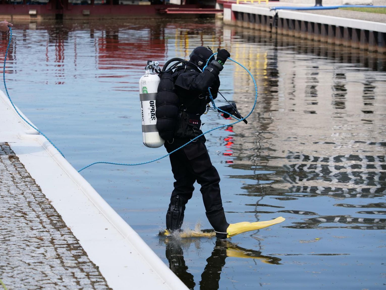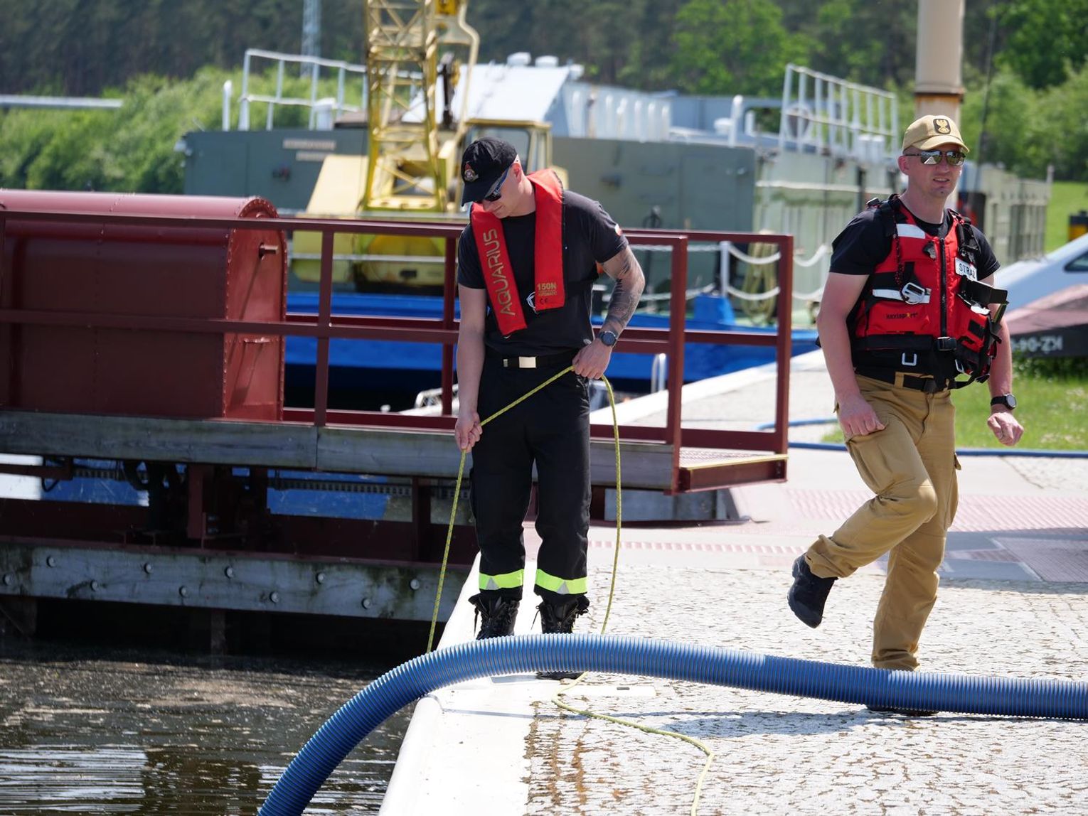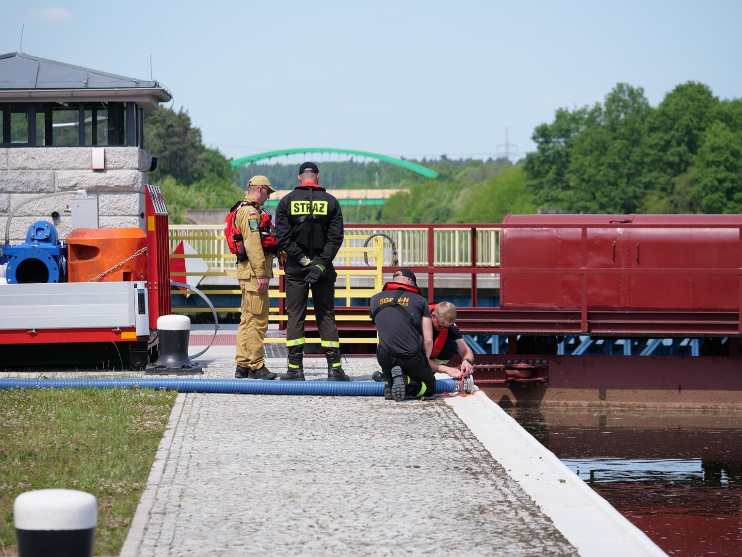 Strażaccy nurkowie już w niedzielę, 28 maja zamontowali w komorze śluzy kilka pomp, które uruchomiono następnego dnia. Przy pomocy pontonów z silnikami mieszali wodę także od góry.