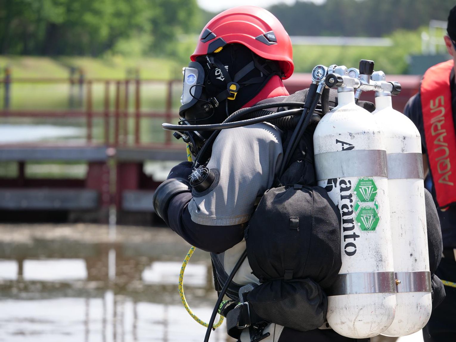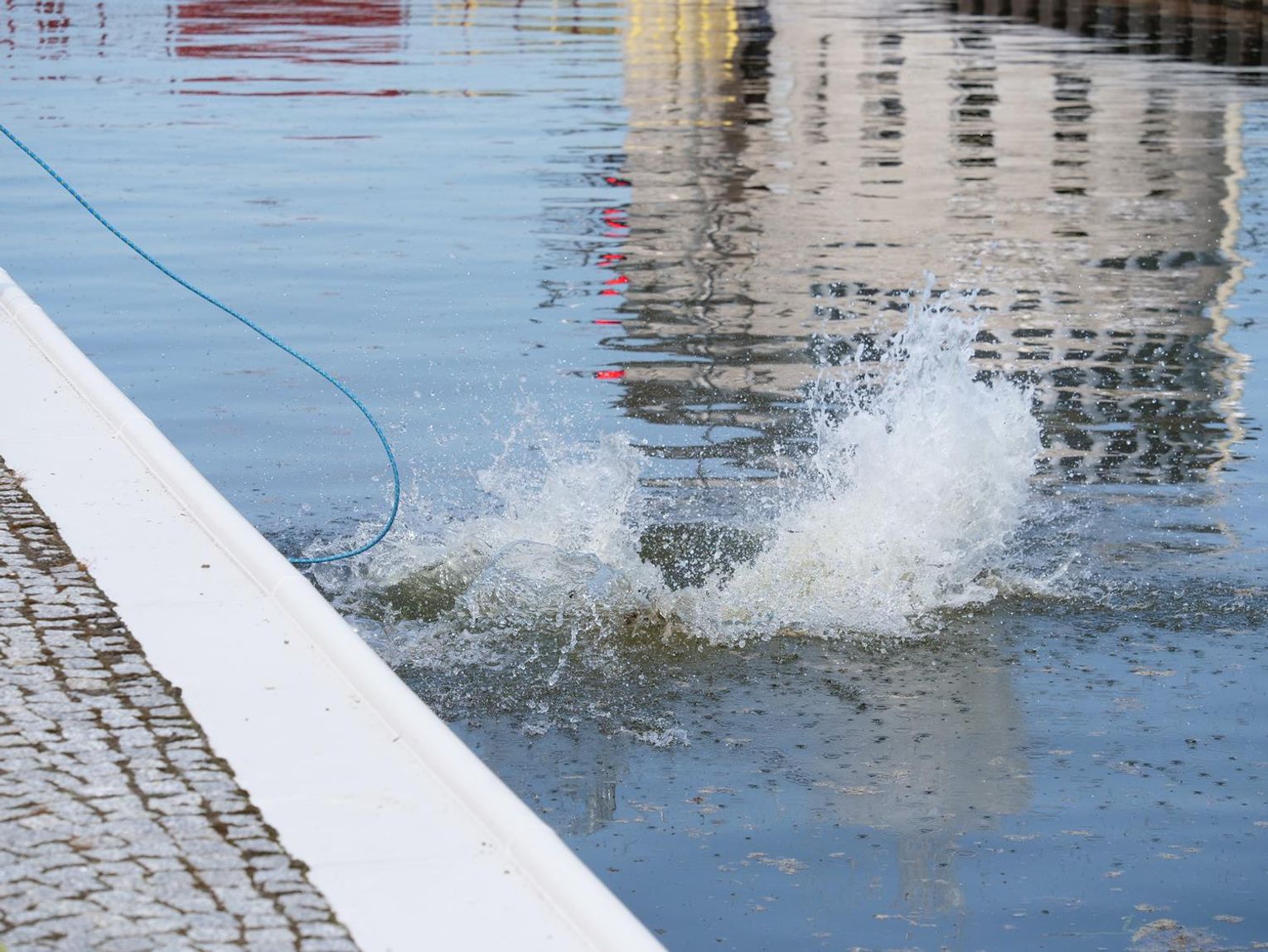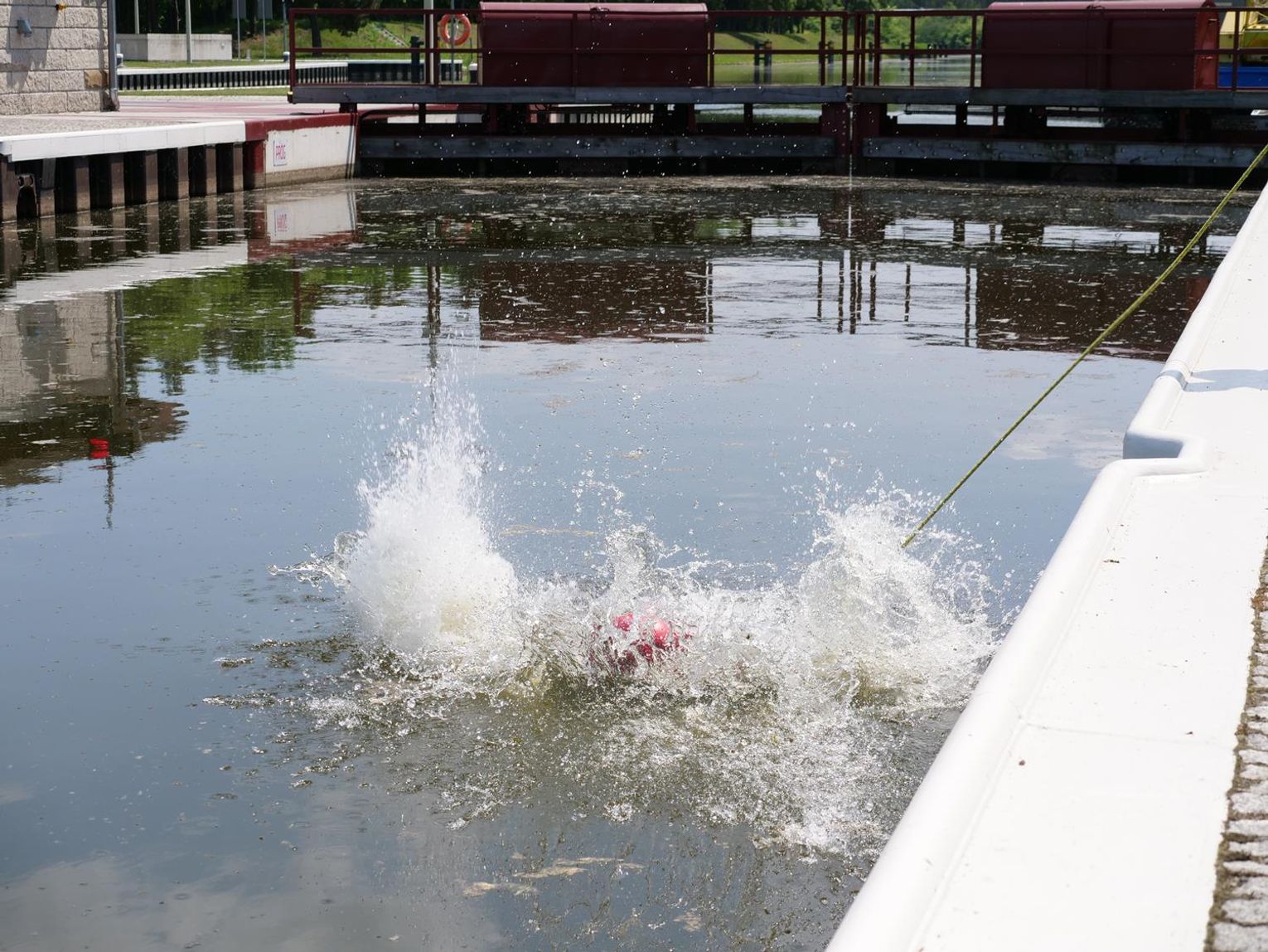 Strażaccy nurkowie już w niedzielę, 28 maja zamontowali w komorze śluzy kilka pomp, które uruchomiono następnego dnia. Przy pomocy pontonów z silnikami mieszali wodę także od góry.