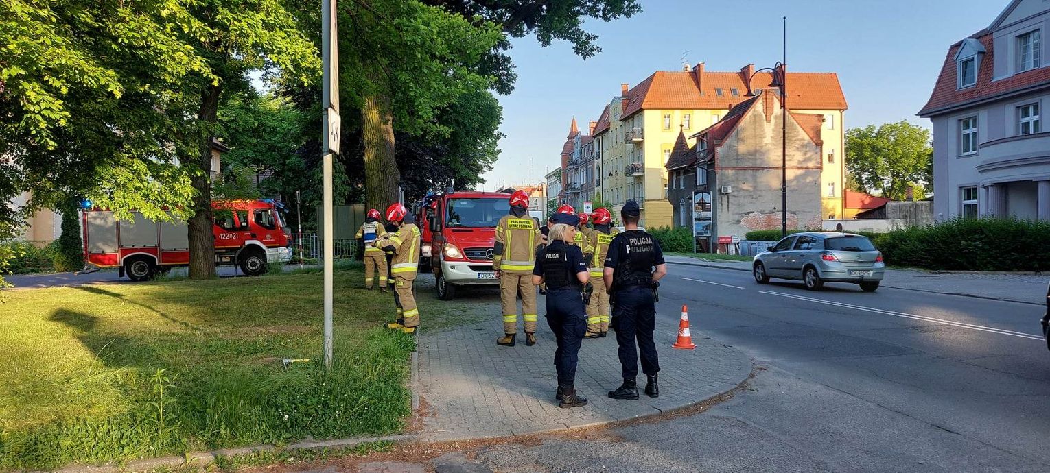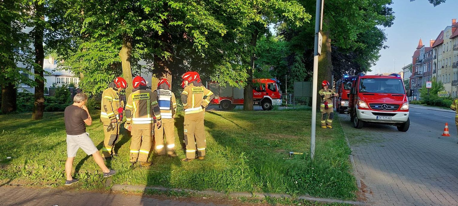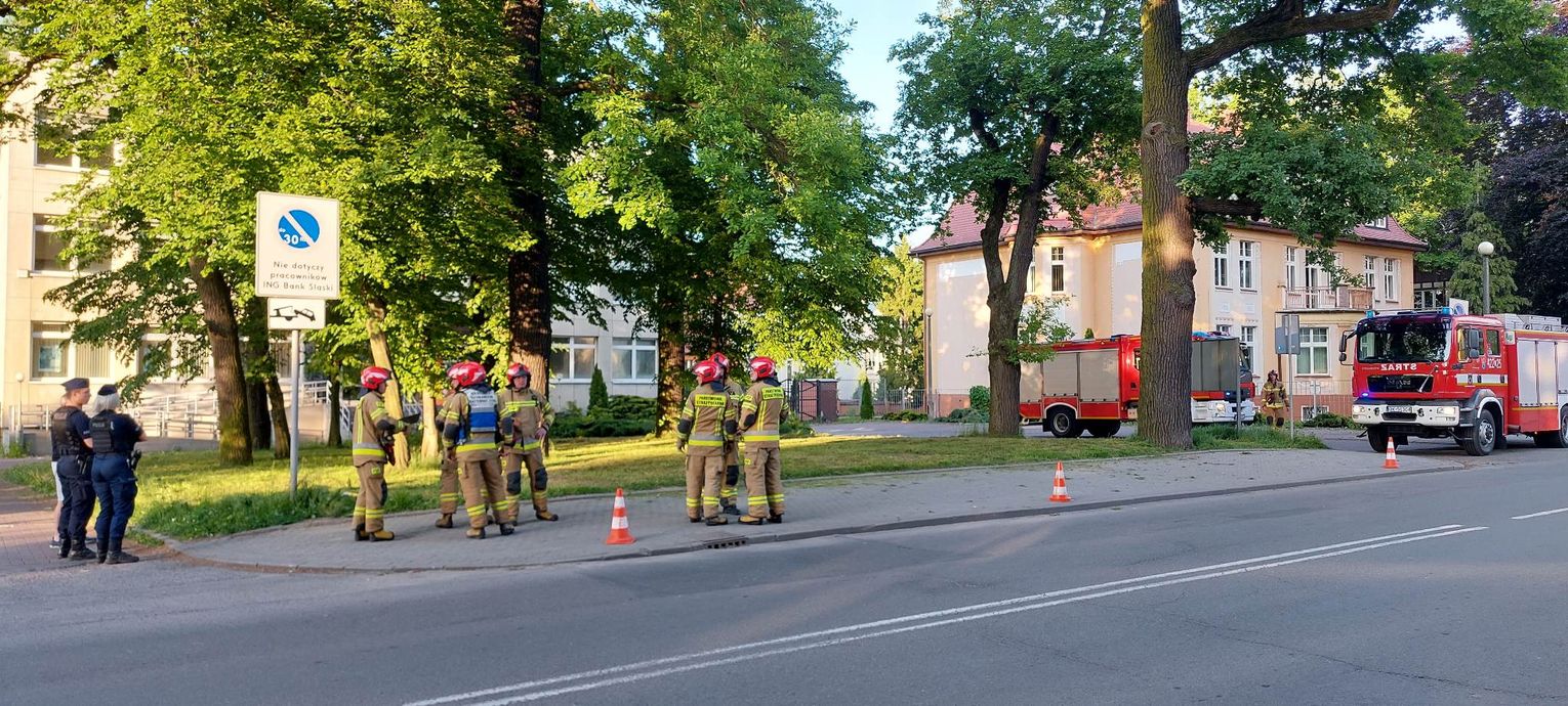 Kilka zastępów straży pożarnej, w tym Specjalistyczna Grupa Ratownictwa Chemiczno-Ekologicznego z Jednostki Ratowniczo-Gaśniczej nr 1, patrol policji oraz pogotowie gazowe interweniowali przed budynkiem dawnego banku ING w Koźlu. W trakcie koszenia trawy "traktorkiem", mężczyzna uderzył w wystającą rurę (odwadniacz, przez który zostaje wypompowywana woda gromadząca się w instalacji gazowej), uszkadzając ją. Kiedy poczuł zapach gazu, zatkał rurę szmatą i powiadomił służby. Strażacy zabezpieczyli teren, wyznaczyli strefę niebezpieczeństwa i przeprowadzili pomiary stężenia gazu za pomocą specjalistycznych urządzeń. Dalsze działania prowadziło już pogotowie gazowe.