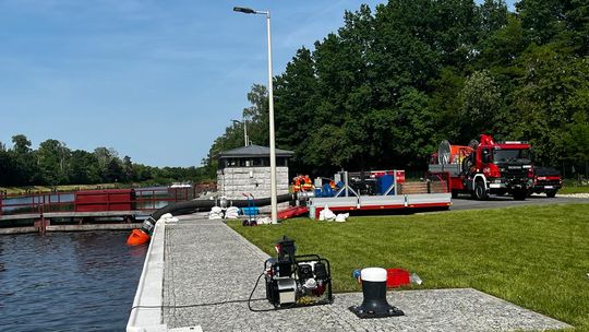 Zastępy z Komendy Powiatowej PSP w Kędzierzynie-Koźlu w tym Specjalistyczna Grupa Ratownictwa Wodno-Nurkowego „Kędzierzyn-Koźle” wraz z funkcjonariuszami Komendy Wojewódzkiej PSP w Opolu przygotowali i rozstawili sprzęt do przepompowania wody w śluzach.