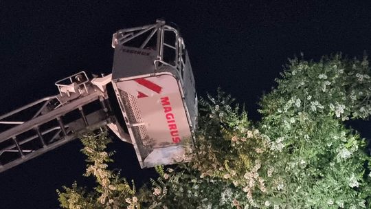 Zgłoszenie do dyżurnego Komendy Powiatowej Państwowej Straży Pożarnej wpłynęło w niedzielę, 4 czerwca około godziny 22.20. Zgłaszająca poinformowała, że kot siedzi na drzewie od rana i nie potrafi zejść. Sierściuch był na tyle wysoko, że konieczne było użycie drabiny mechanicznej. Kiedy strażacy próbowali złapać kota, ten zeskoczył i uciekł między budynki.