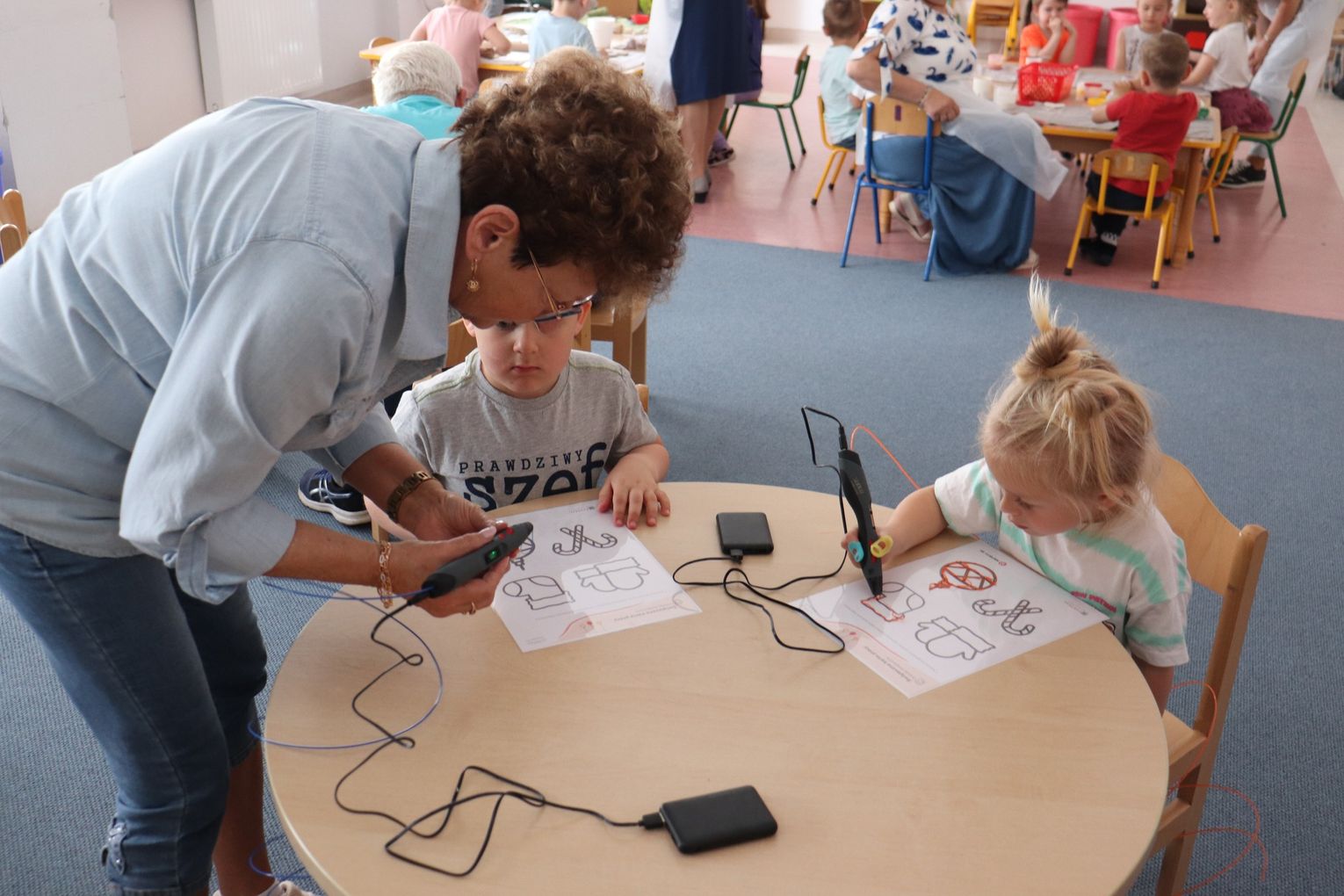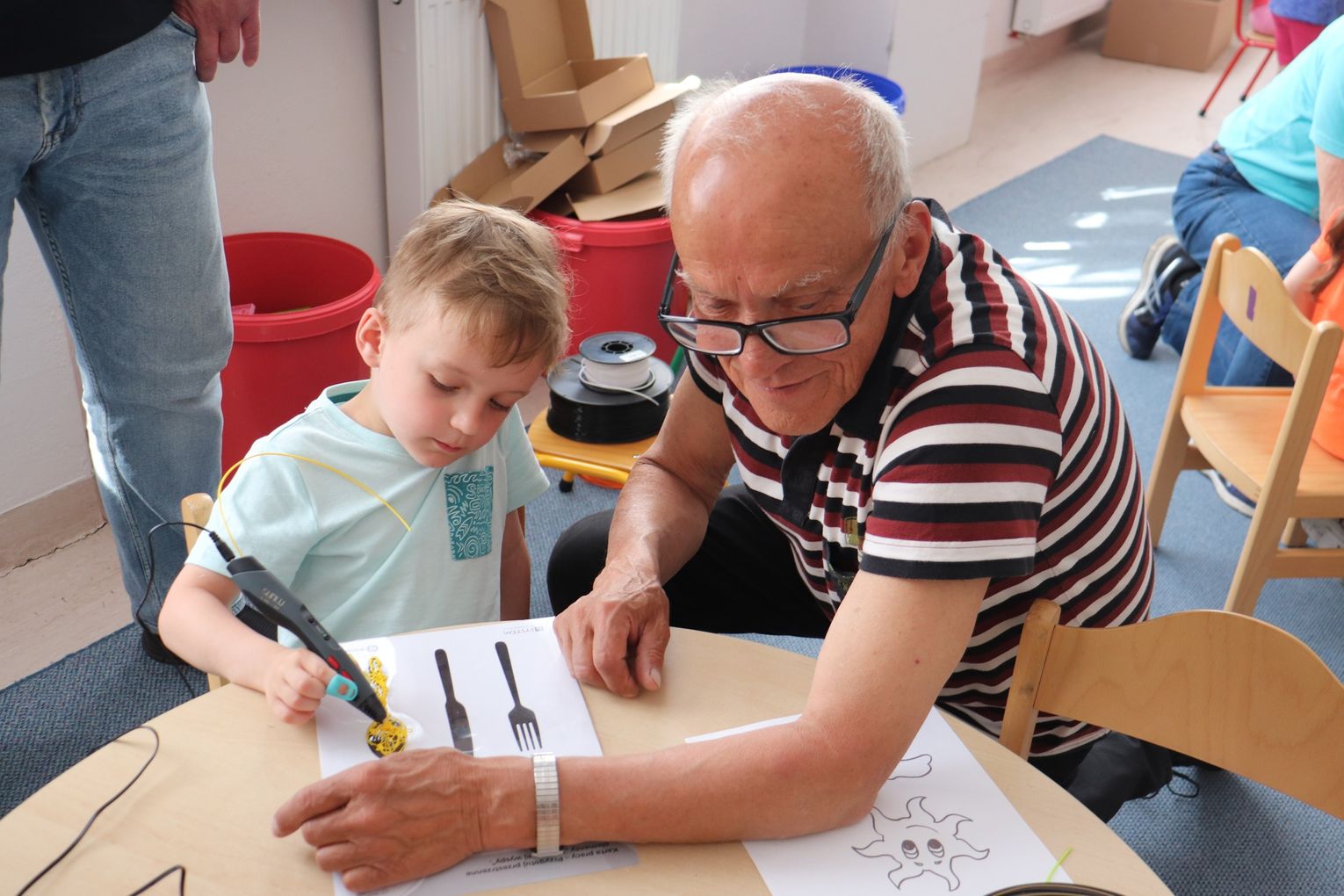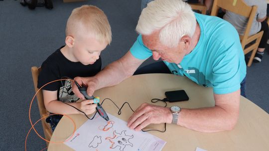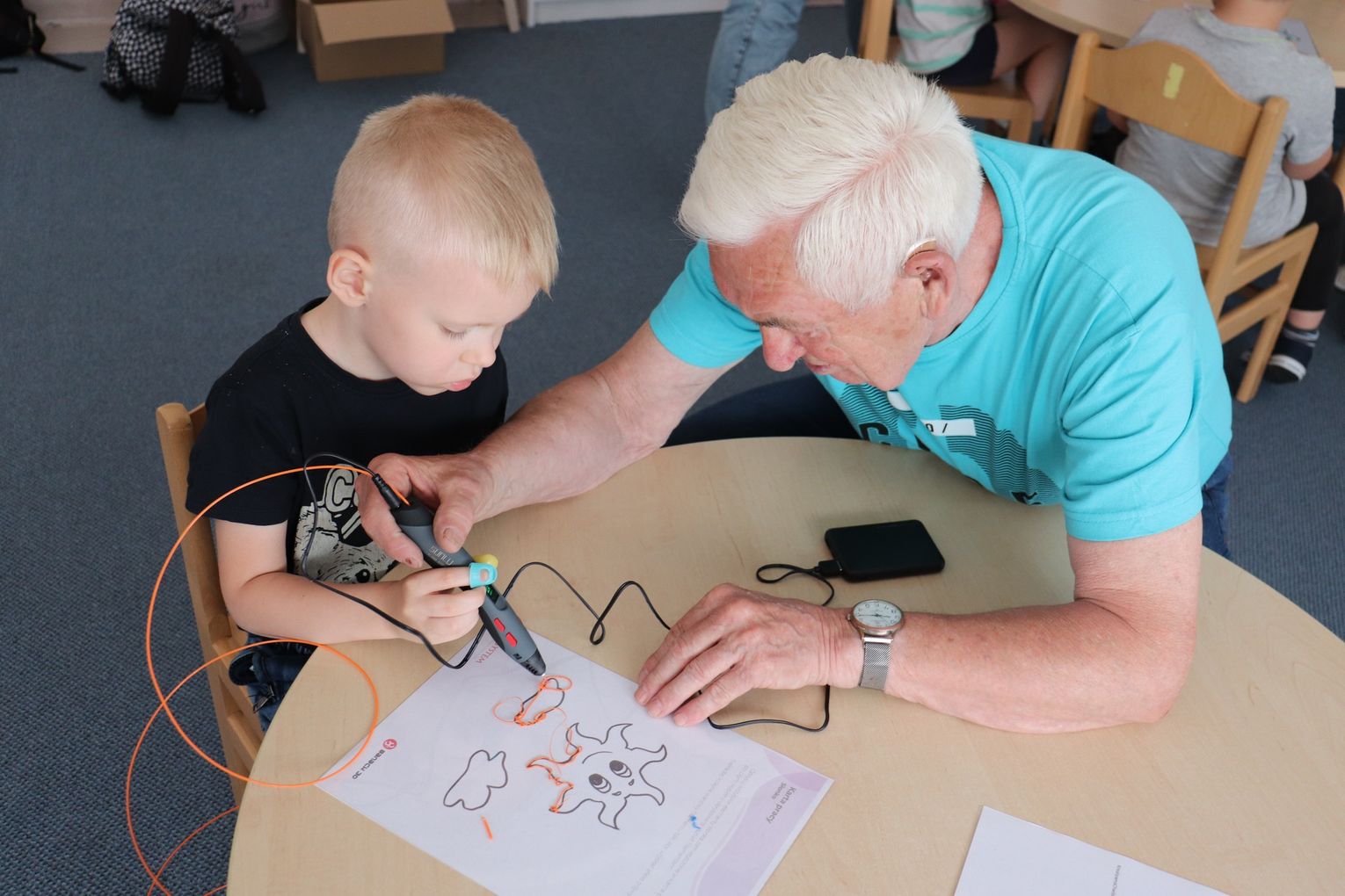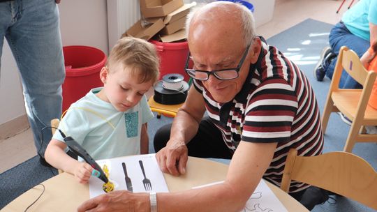 Seniorzy z Domu Dziennego Pobytu nr 2 „Magnolia” wraz z dziećmi z grupy „Fiołki” z Przedszkola nr 26 uczestniczyli w zajęciach manualnych z wykorzystaniem długopisów 3D oraz zasobów pracowni ceramicznej. Tym razem to seniorzy wcielili się w rolę wprowadzających w świat nowinek technicznych i dzięki temu spod rąk maluchów wyszły prawdziwe cudeńka.
