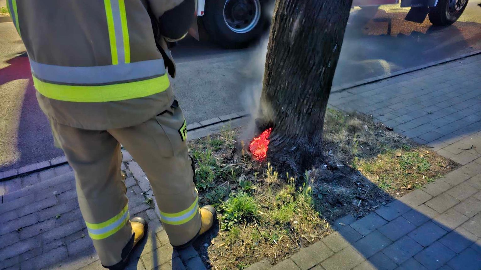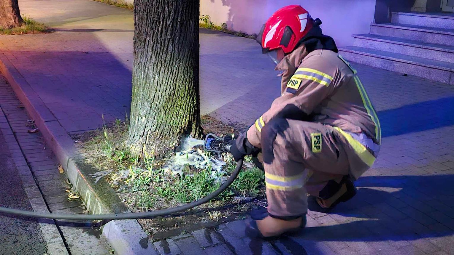 Ktoś podpalił drzewo. Interweniowali strażacy i policjanci