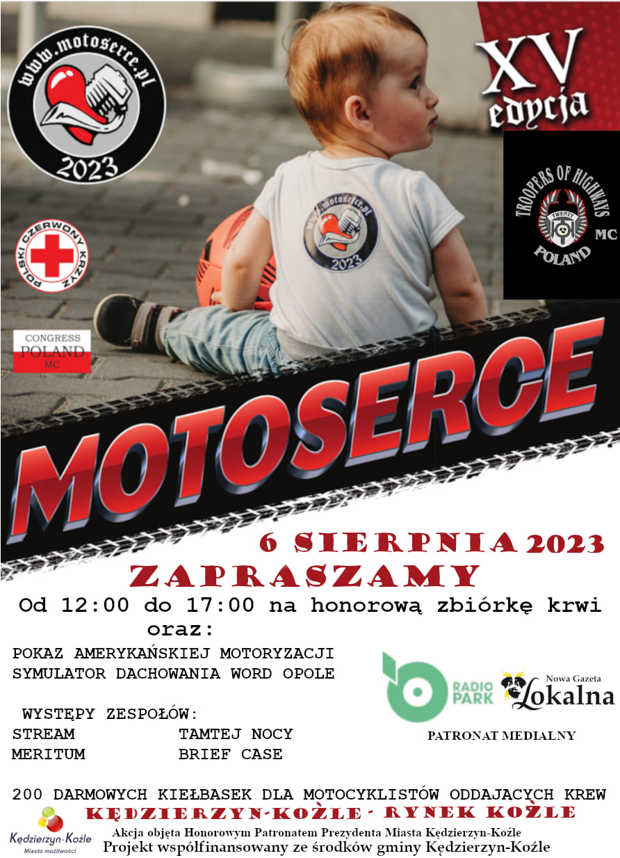 Wydarzenie objęte honorowym patronatem prezydenta miasta odbędzie się w niedzielę, 6 sierpnia w godzinach od 12 do 17 na kozielskim rynku. Na scenie wystąpią zespoły: Stream, Meritum, Tamtej nocy oraz Brief Case. Nie zabraknie świetnych motocykli - w tym również amerykańskich. Wśród atrakcji m.in. symulator dachowania i najważniejsze - mobilny punkt poboru krwi.