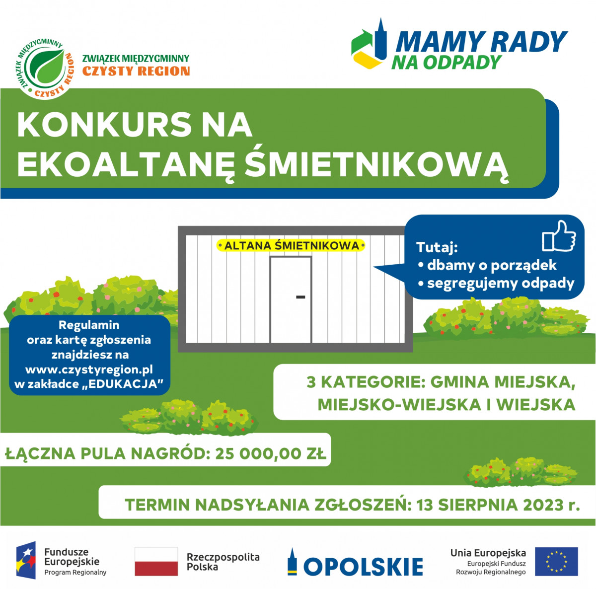 Konkurs na ekoaltanę śmietnikową stanowi element kampanii edukacyjno-informacyjnej „Mamy rady na odpady”. Jego celem jest edukacja w zakresie właściwej segregacji oraz podkreślenie znaczenia współpracy mieszkańców i zarządców nieruchomości w celu utrzymania czystości i porządku.