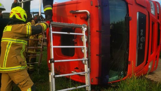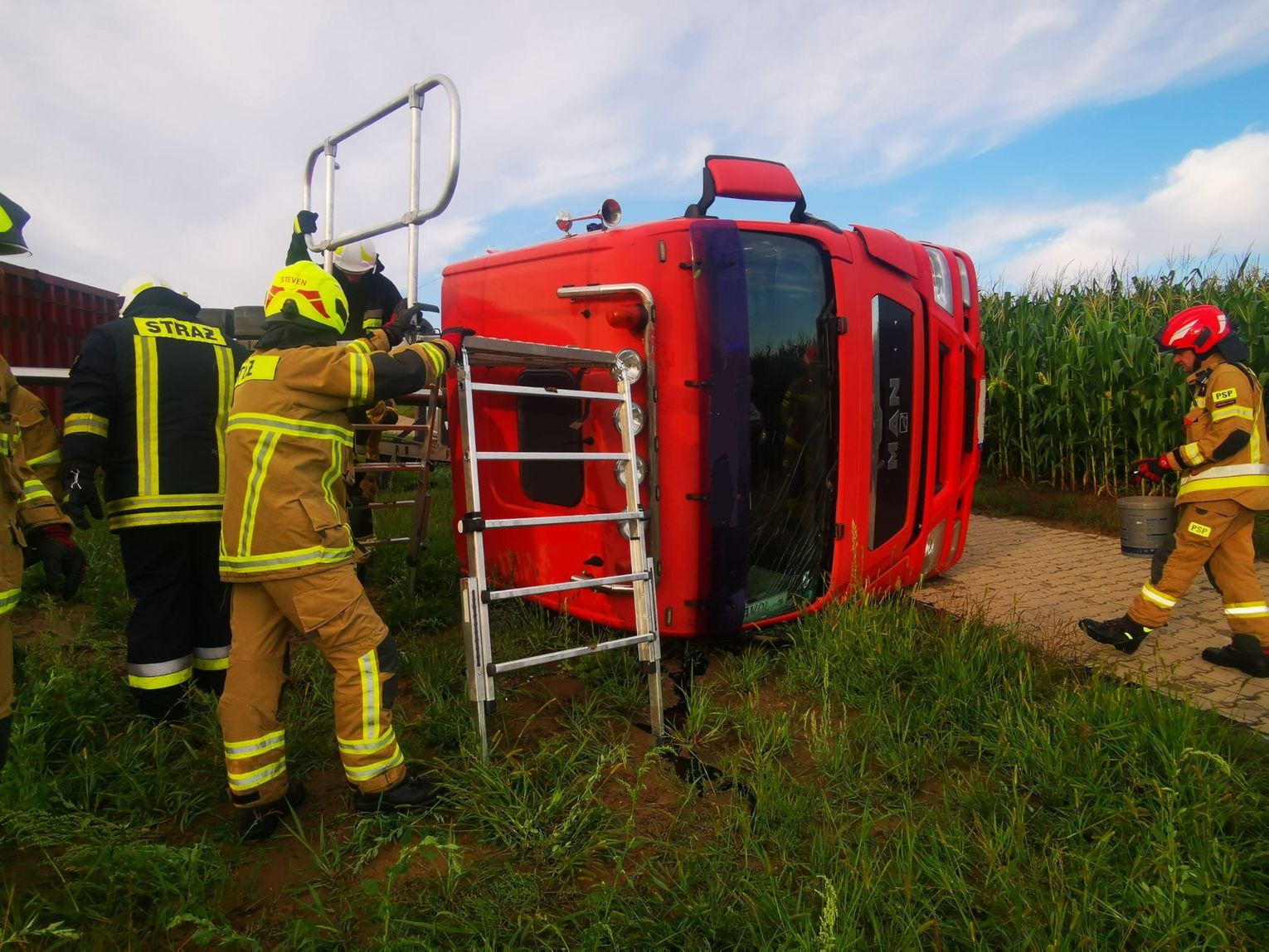 Działania strażaków polegały na pomocy poszkodowanemu kierowcy w opuszczeniu kabiny przewróconego pojazdu ciężarowego i przekazaniu Zespołowi Ratownictwa Medycznego. Dalsze działania polegały na zabezpieczeniu wycieku płynów eksploatacyjnych z pojazdu - informuje Komenda Powiatowa Państwowej Straży Pożarnej w Kędzierzynie-Koźlu.