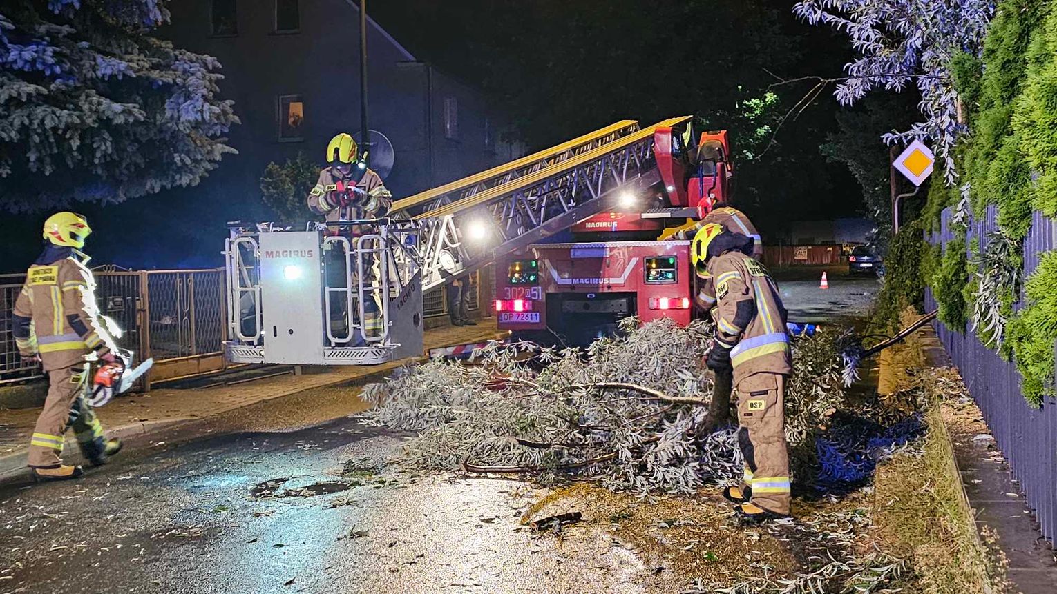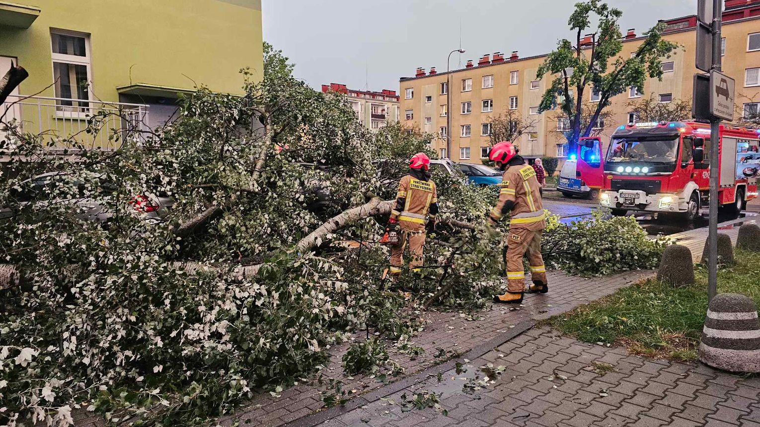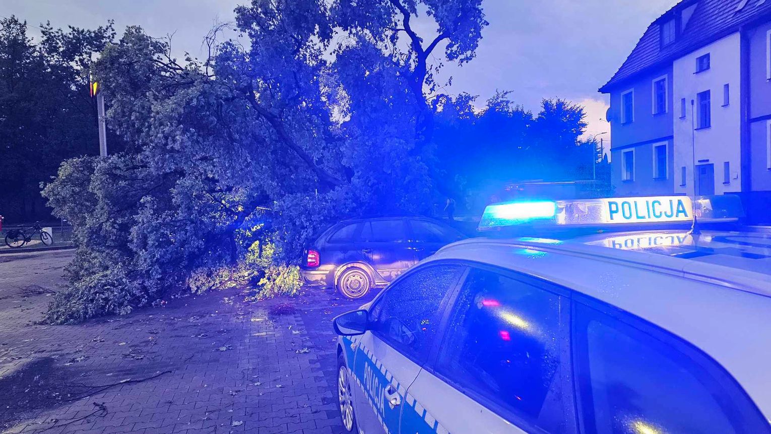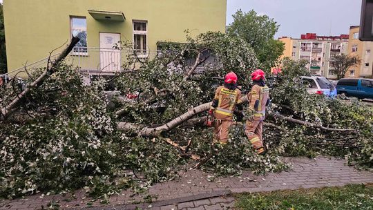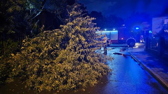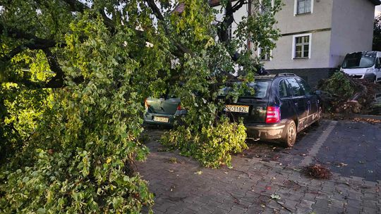 Nawałnica nad Kędzierzynem-Koźlem i okolicami przeszła około godziny 19.40, a już kilka minut później w całym powiecie zawyły strażackie syreny. Tylko w pierwszej godzinie strażacy interweniowali ponad 50 razy i do tej pory (godz. 22.10) otrzymują kolejne zgłoszenia. Jedne z najgorszych sytuacji, to powalone drzewo na dwa samochody oraz latarnię przy ulicy Miłej. Powalone drzewo na cztery samochody tuż obok przychodni zdrowia przy ul. Harcerskiej (dwa pojazdy zostały poważnie uszkodzone). Ogromne drzewo przewróciło się na budynek mieszkalny przy ulicy Dmowskiego, a kawałek dalej inne drzewo spadło na samochód. Przy ul. 1 Maja drzewo spadło na stojak z rowerami. Na obwodnicy miasta w kilku miejscach nieprzejezdne były pasy ruchu, na których leżały powalone konary i gałęzie. To tylko kilka z wielu zdarzeń. Więcej informacji podamy, gdy strażacy zakończą pracę.