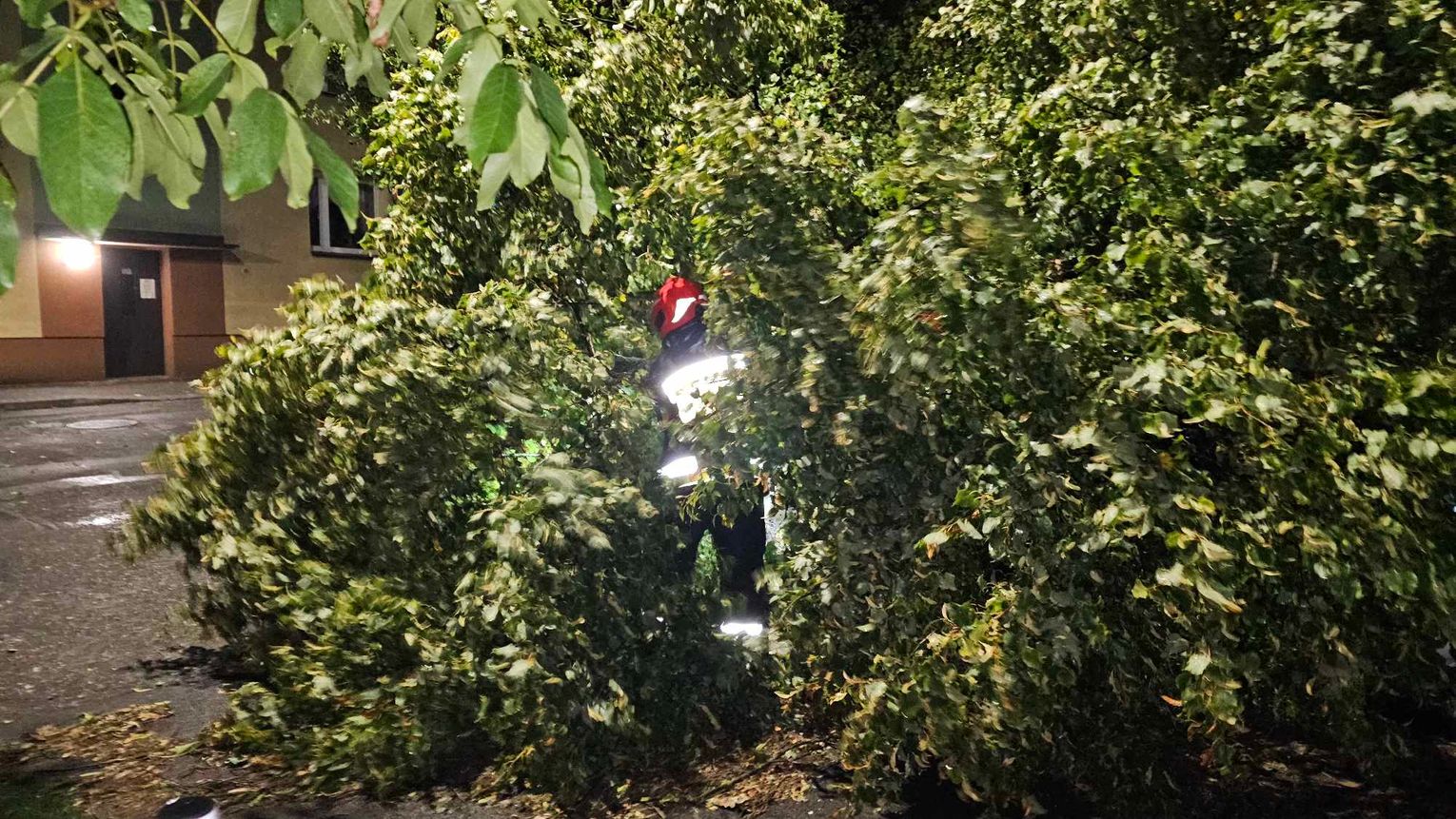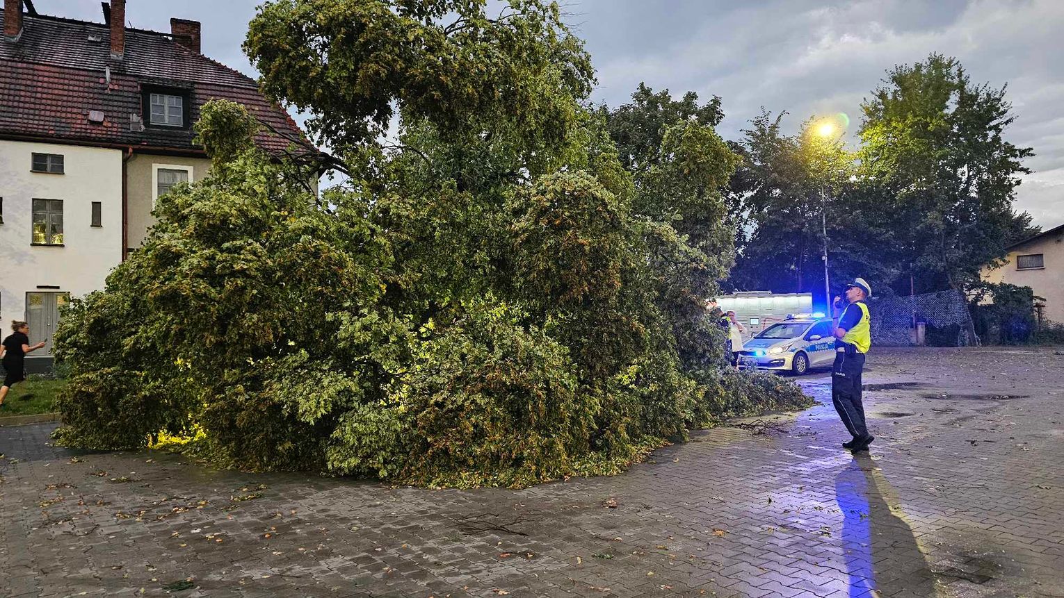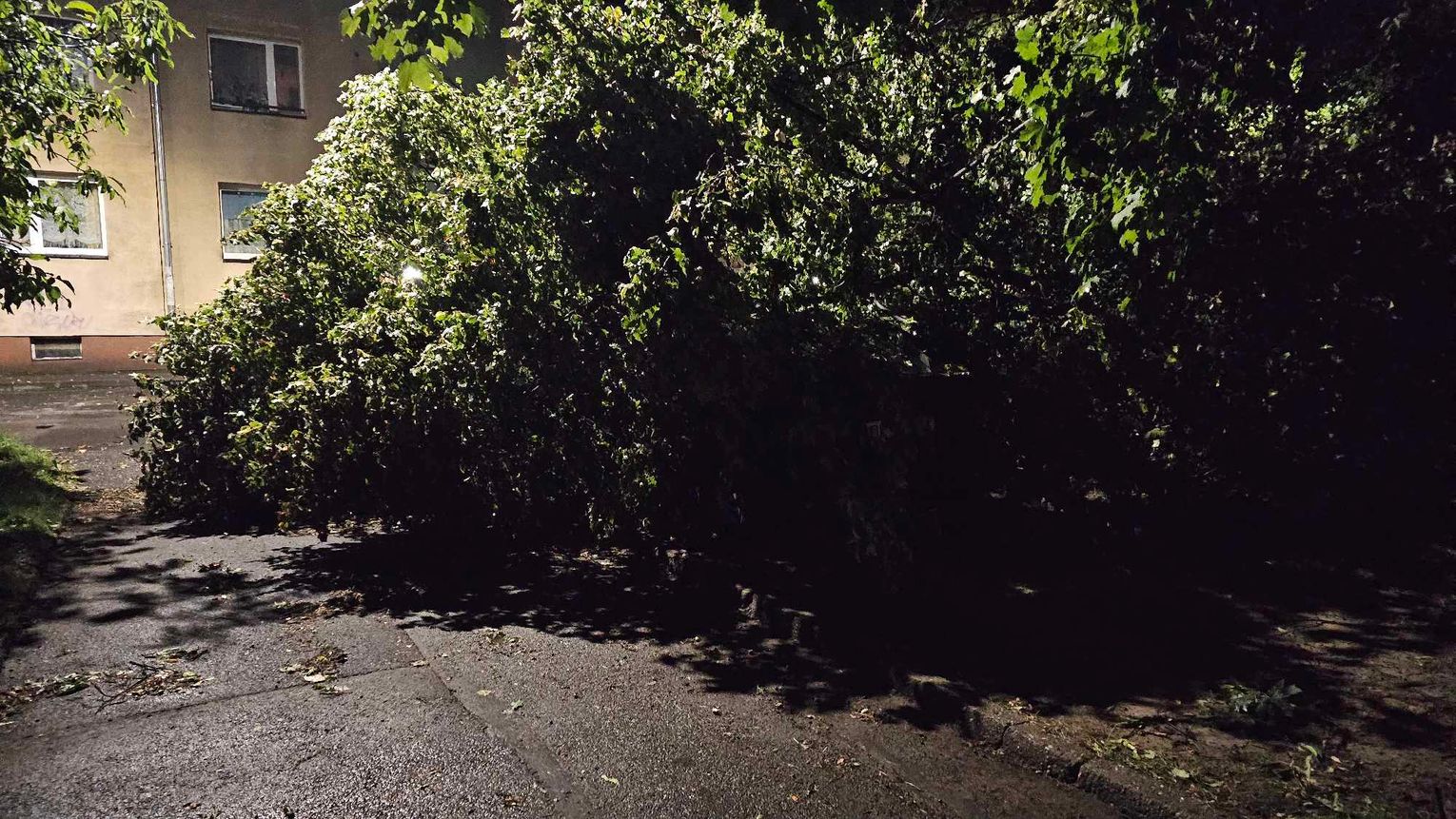 Nawałnica nad Kędzierzynem-Koźlem i okolicami przeszła około godziny 19.40, a już kilka minut później w całym powiecie zawyły strażackie syreny. Tylko w pierwszej godzinie strażacy interweniowali ponad 50 razy i do tej pory (godz. 22.10) otrzymują kolejne zgłoszenia. Jedne z najgorszych sytuacji, to powalone drzewo na dwa samochody oraz latarnię przy ulicy Miłej. Powalone drzewo na cztery samochody tuż obok przychodni zdrowia przy ul. Harcerskiej (dwa pojazdy zostały poważnie uszkodzone). Ogromne drzewo przewróciło się na budynek mieszkalny przy ulicy Dmowskiego, a kawałek dalej inne drzewo spadło na samochód. Przy ul. 1 Maja drzewo spadło na stojak z rowerami. Na obwodnicy miasta w kilku miejscach nieprzejezdne były pasy ruchu, na których leżały powalone konary i gałęzie. To tylko kilka z wielu zdarzeń. Więcej informacji podamy, gdy strażacy zakończą pracę.