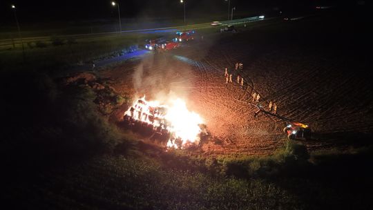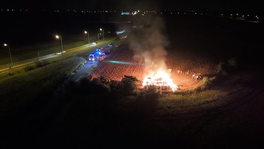 Pożar słomy na polu przy DK45 pomiędzy Reńską Wsią a Większycami