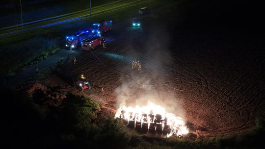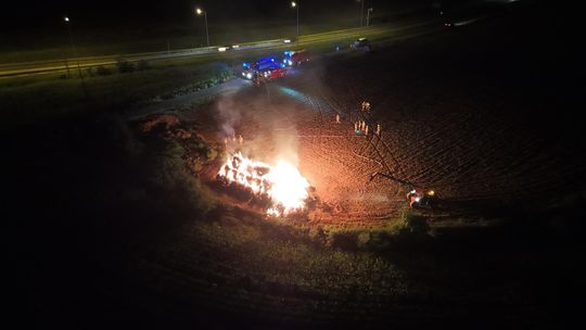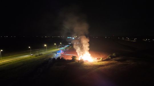 Kilka zastępów straży pożarnej interweniuje na polu przy drodze krajowej nr 45 pomiędzy Reńską Wsią a Większycami, gdzie doszło do pożaru słomy.