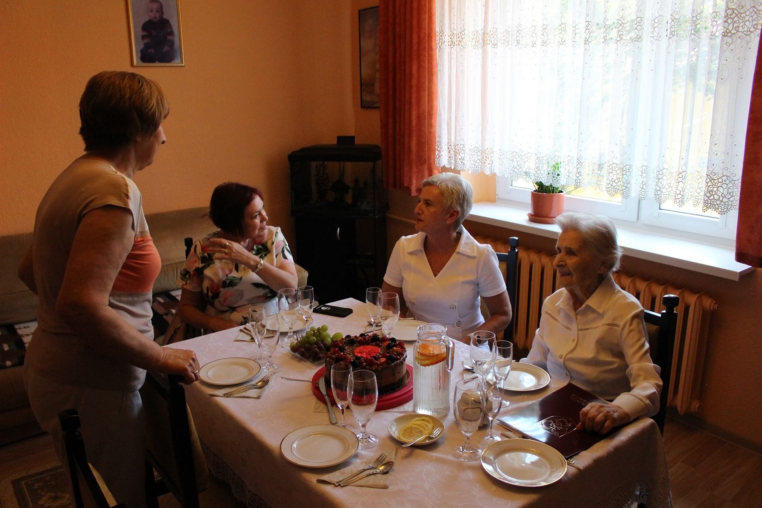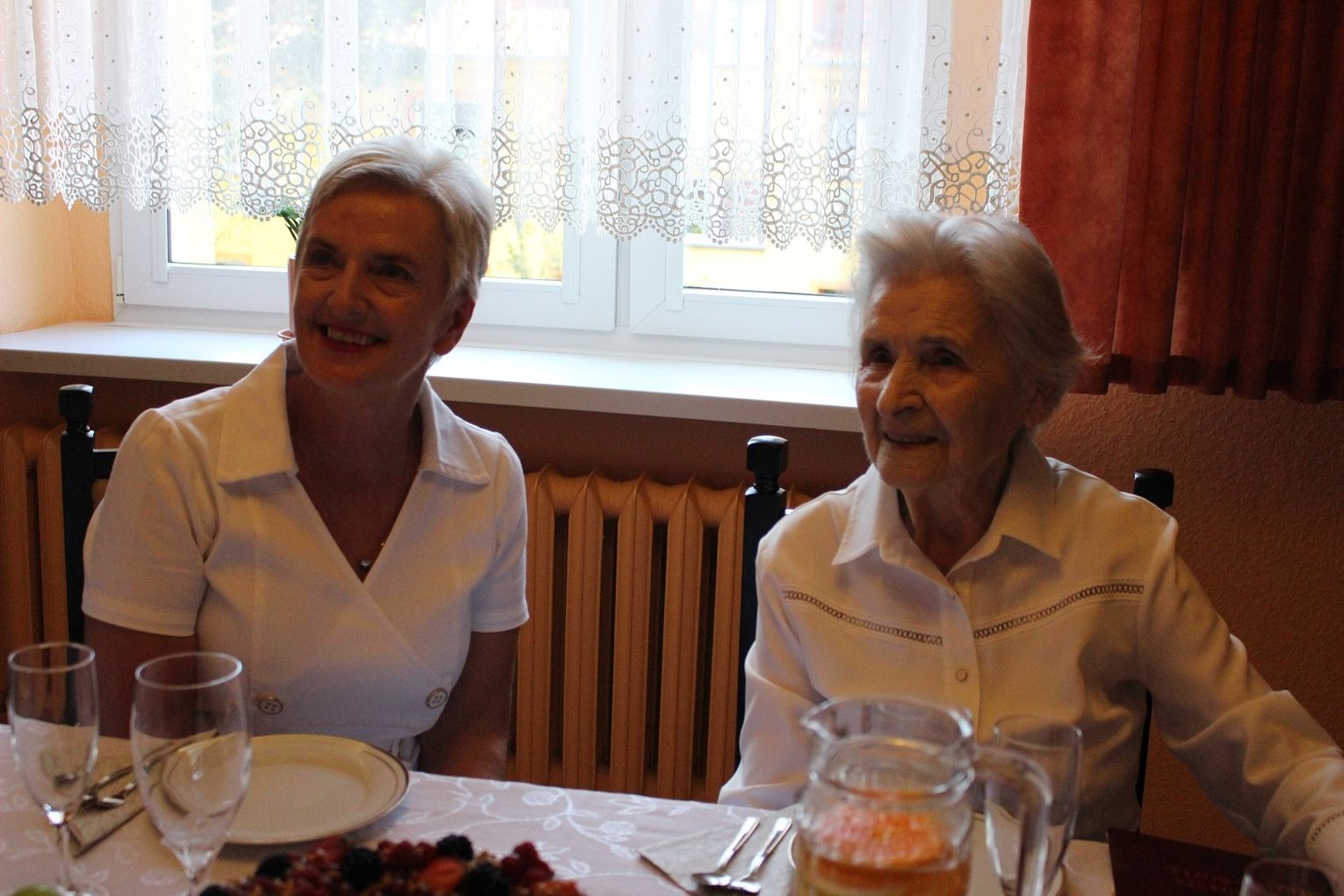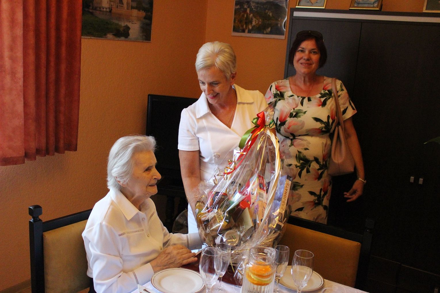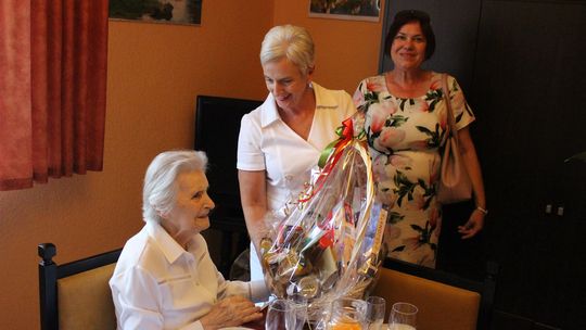 Solenizantka setne urodziny świętowała nie tylko w gronie rodziny, przyjaciół i najbliższych. Z życzeniami oraz prezentem odwiedziły ją również osobiście prezydent Sabina Nowosielska oraz kierownik wydziału spraw obywatelskich Elżbieta Fiołek. Podczas spotkania pojawiła się okazja do serdecznej rozmowy i wspomnień.
