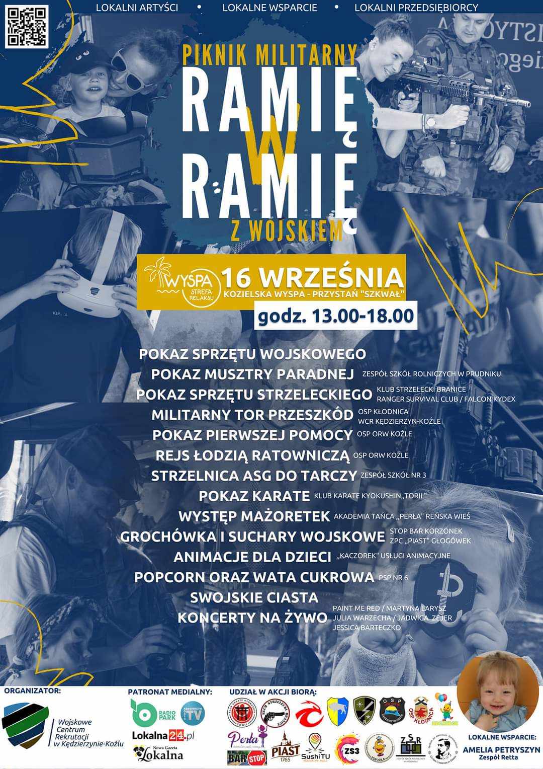 W godzinach 13.00-18.00 odbędą się pokazy: sprzętu wojskowego i strzeleckiego, musztry paradnej, pierwszej pomocy i karate. Na przybyłych czekać będą też: militarny tor przeszkód czy rejs łodzią ratowniczą. Jedną z atrakcji będzie również amerykański Cougar. Wystąpią mażoretki oraz wokaliści. Nie zabraknie animacji dla najmłodszych oraz pyszności na zimno i na ciepło. Link do wydarzenia.