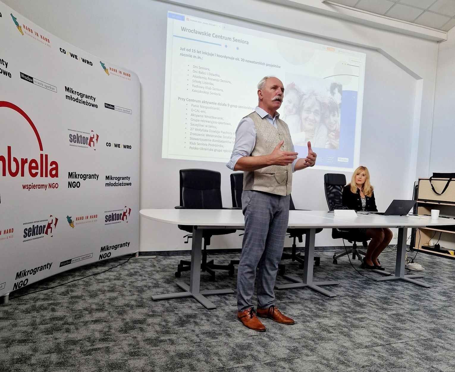 Podczas wizyty Robert Pawliszko, z-ca dyrektora ds. międzypokoleniowej aktywizacji społecznej WCRS, Kamila Polańska, specjalista ds. projektów senioralnych i informacji WCRS-WCS oraz Kazimierz Szepiela, członek zarządu, przedstawiciel Wrocławskiego Centrum Wspierania Organizacji Pozarządowych SEKTOR 3 opowiedzieli o dobrych praktykach w ramach wolontariatu seniorskiego, a także ciekawych inicjatywach seniorskich realizowanych w stolicy Dolnego Śląska.