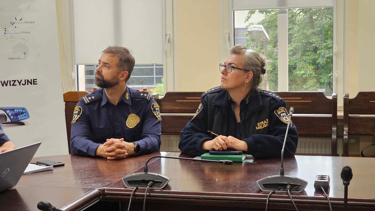 W konferencji udział wzięli: prezydent miasta Sabina Nowosielska, jej zastępca Wojciech Jagiełło, prezes zarządu Vitronic Michał Żuchora, komendant Komendy Powiatowej Policji w Kędzierzynie-Koźlu Hubert Adamek oraz komendant straży miejskiej Aleksy Ptaszyński.