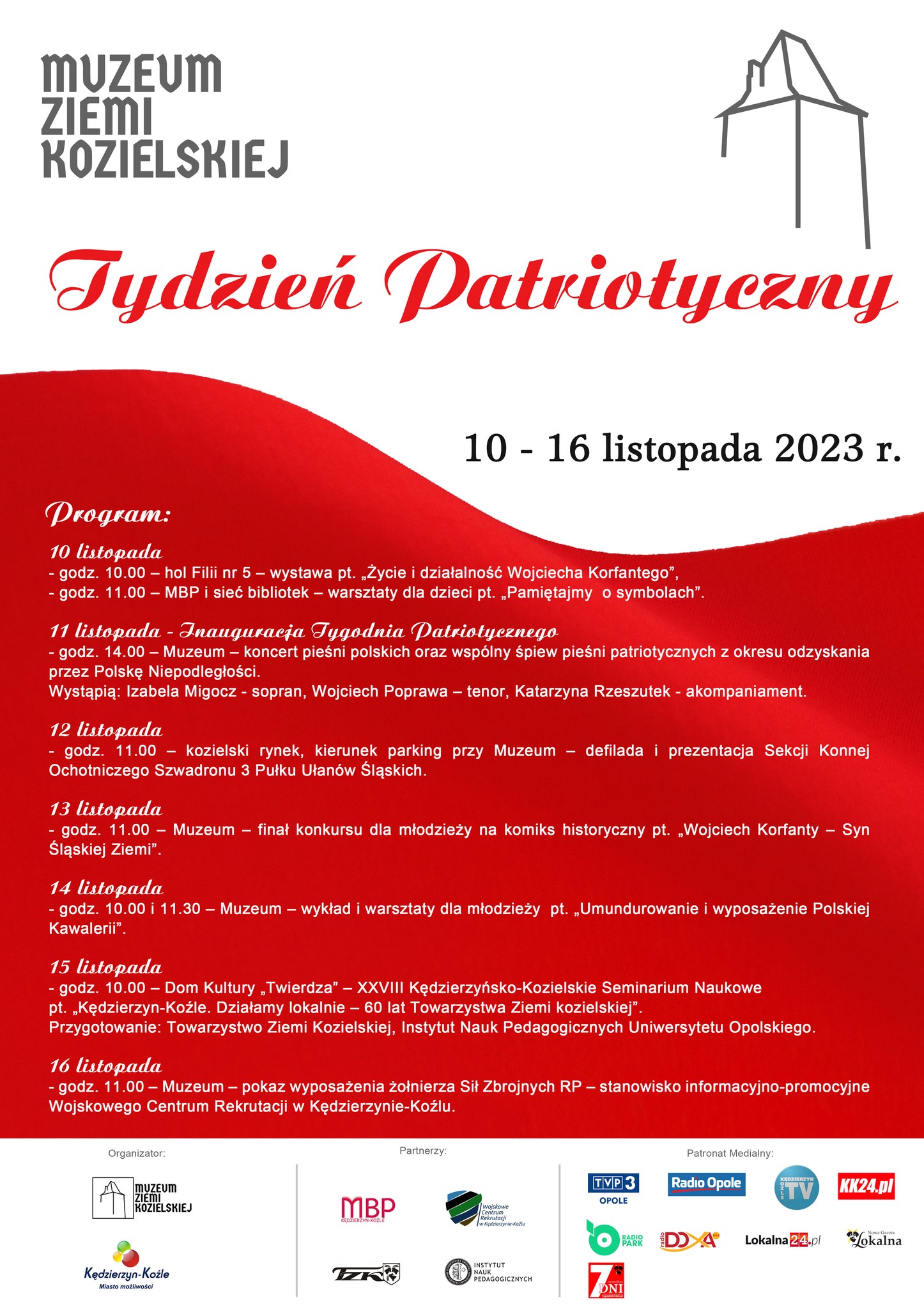 godz. 10.00 – Dom Kultury „Twierdza” – XXVIII Kędzierzyńsko-Kozielskie Seminarium Naukowe pt. „Kędzierzyn-Koźle. Działamy lokalnie – 60 lat Towarzystwa Ziemi kozielskiej”. Przygotowanie: Towarzystwo Ziemi Kozielskiej, Instytut Nauk Pedagogicznych Uniwersytetu Opolskiego.