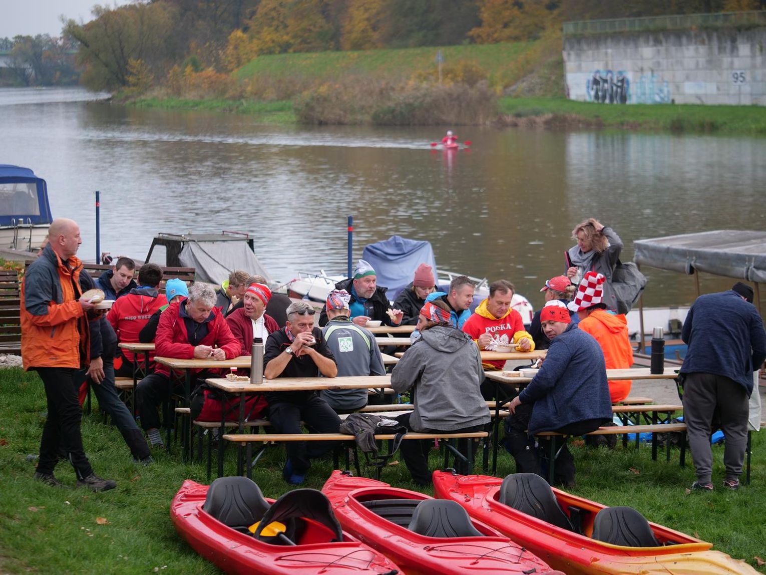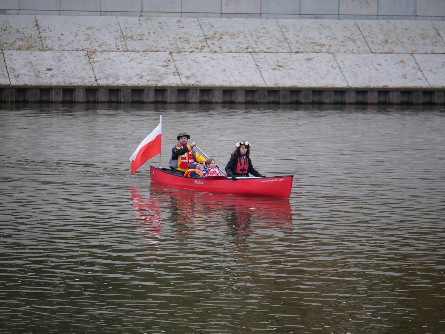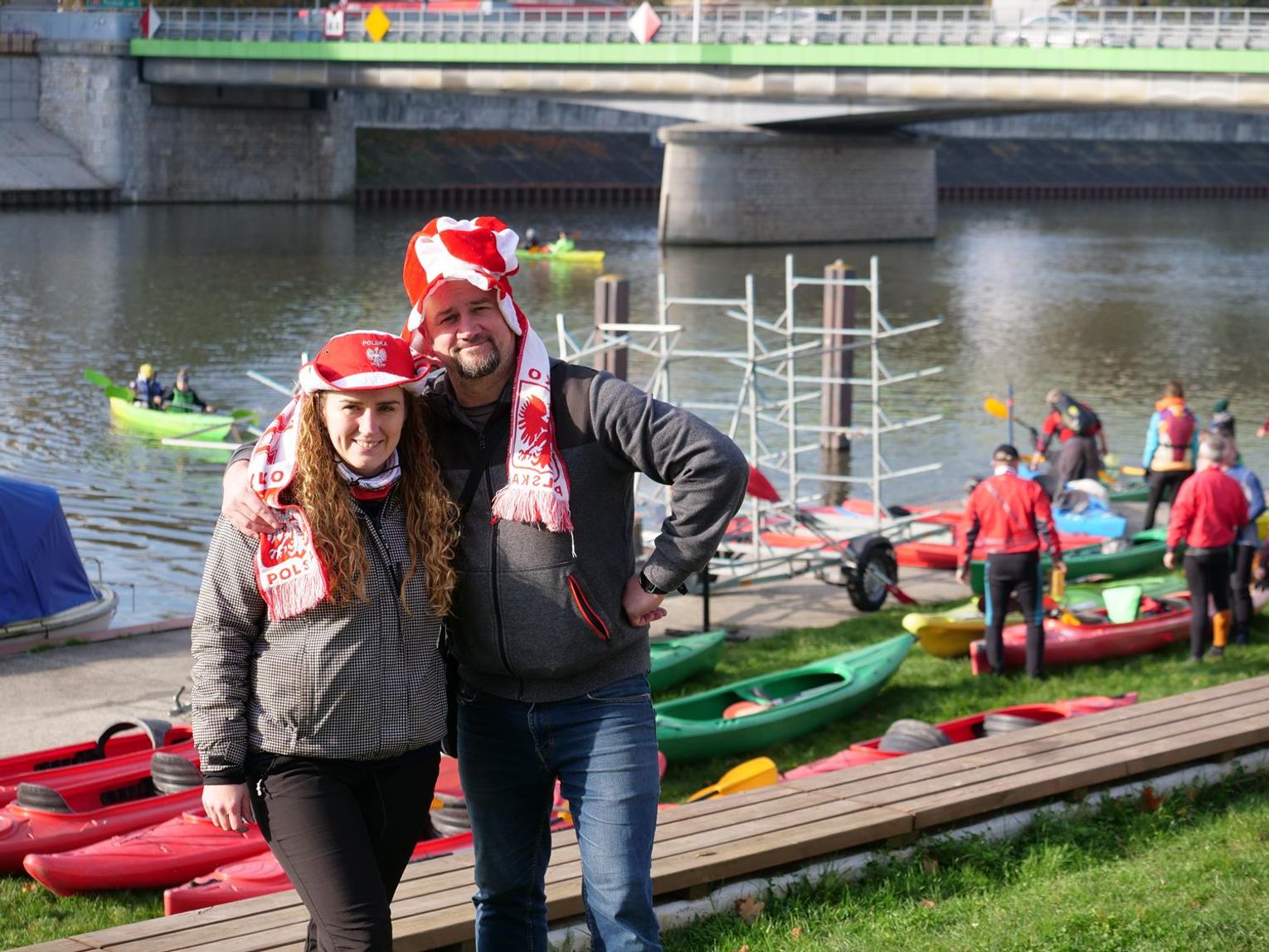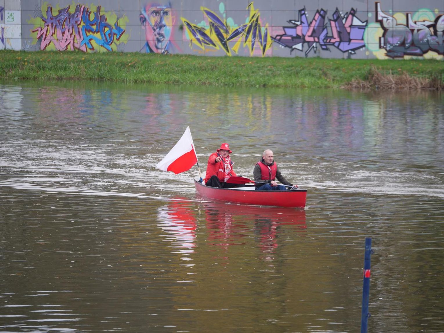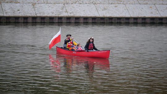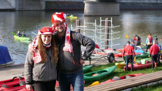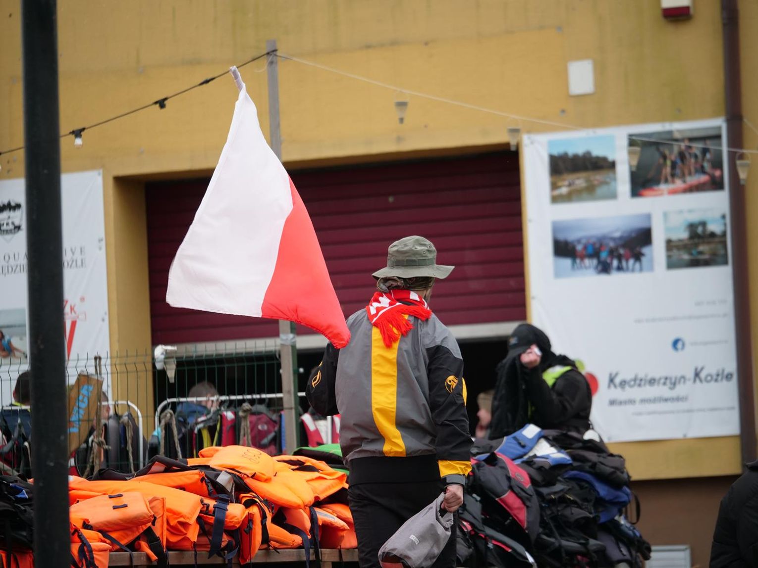 - Uczestnicy spływu przyjechali do nas niemalże z całego kraju. Większość z nich, to stali bywalcy, ale są też nowe twarze. Najmłodsi uczestnicy mają cztery latka, a najstarsi kilkadziesiąt. Oczywiście każdy na starcie otrzymuje kamizelkę i wiosło, a po spływie ciepły posiłek w postaci grochówki, ciepły napój i ciasto. Z racji święta nie mogło zabraknąć patriotycznych pamiątek - powiedział Krzysztof Chałat, komandor spływu.