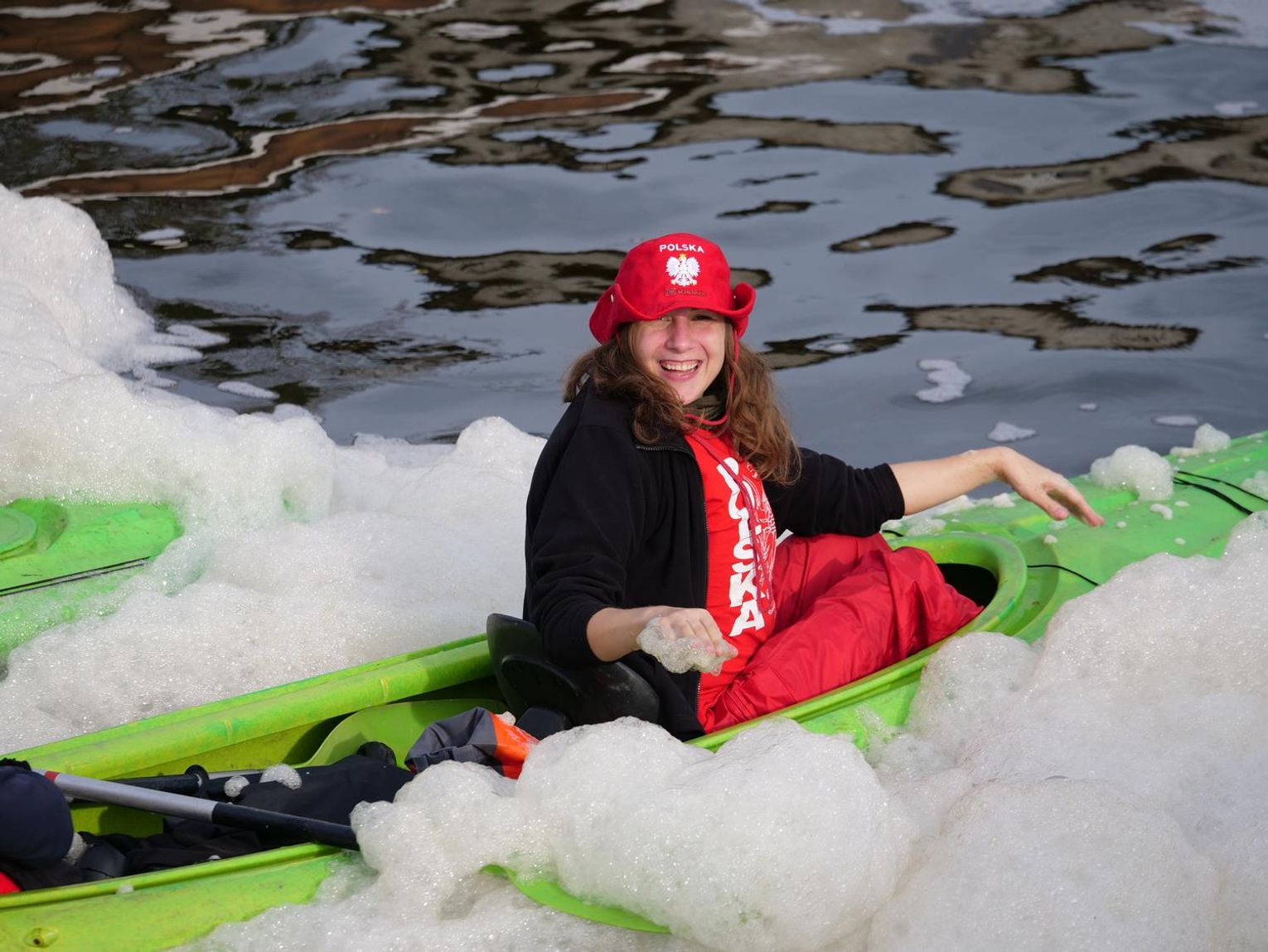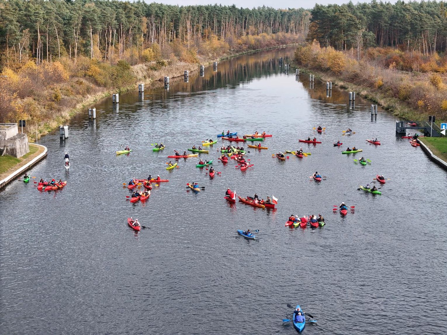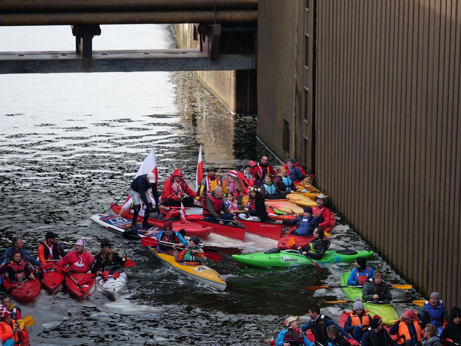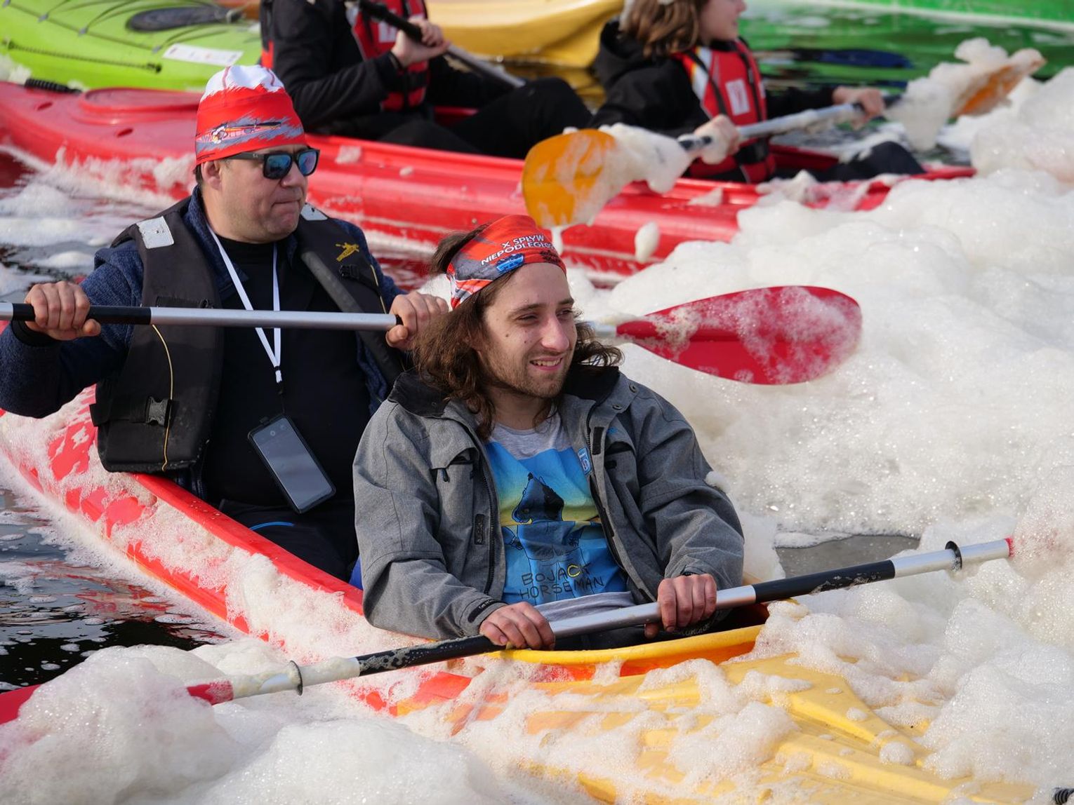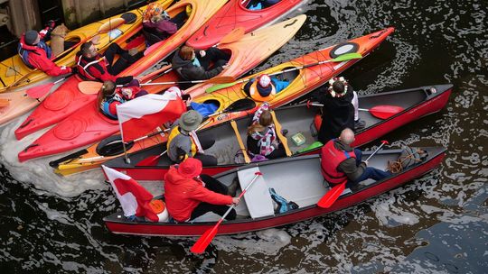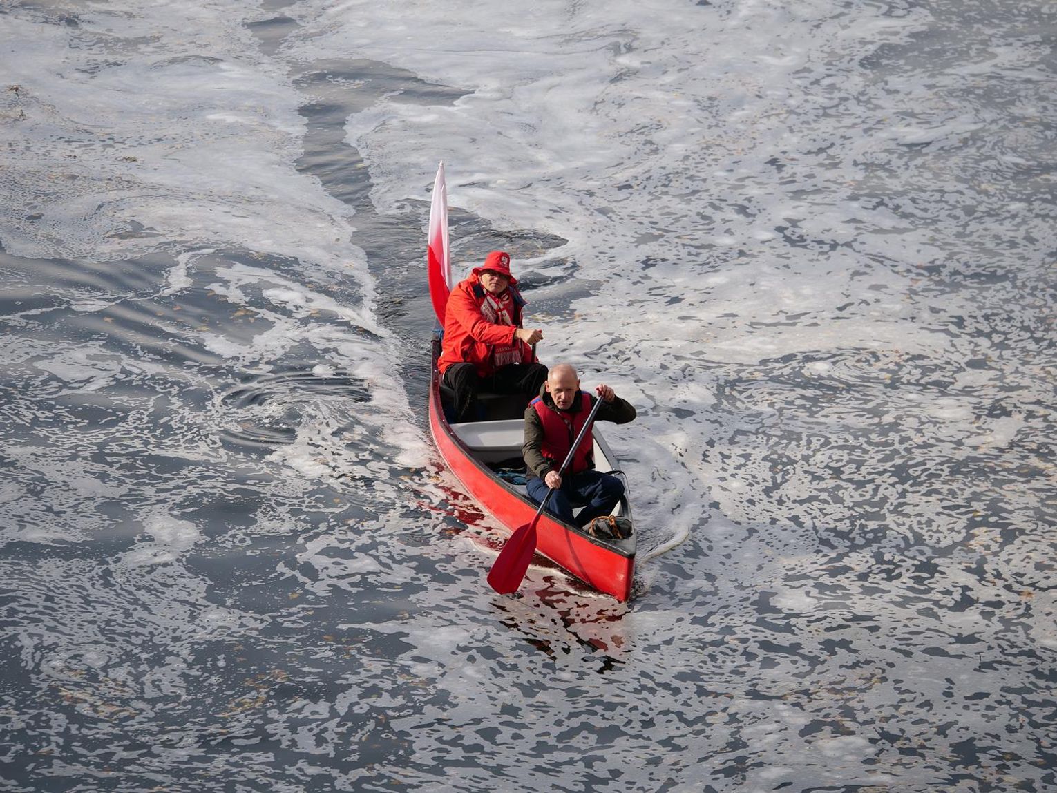 - Uczestnicy spływu przyjechali do nas niemalże z całego kraju. Większość z nich, to stali bywalcy, ale są też nowe twarze. Najmłodsi uczestnicy mają cztery latka, a najstarsi kilkadziesiąt. Oczywiście każdy na starcie otrzymuje kamizelkę i wiosło, a po spływie ciepły posiłek w postaci grochówki, ciepły napój i ciasto. Z racji święta nie mogło zabraknąć patriotycznych pamiątek - powiedział Krzysztof Chałat, komandor spływu.
