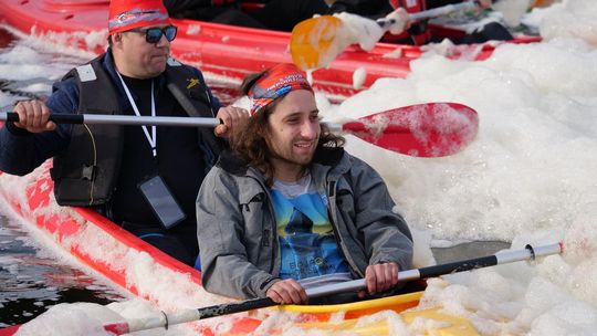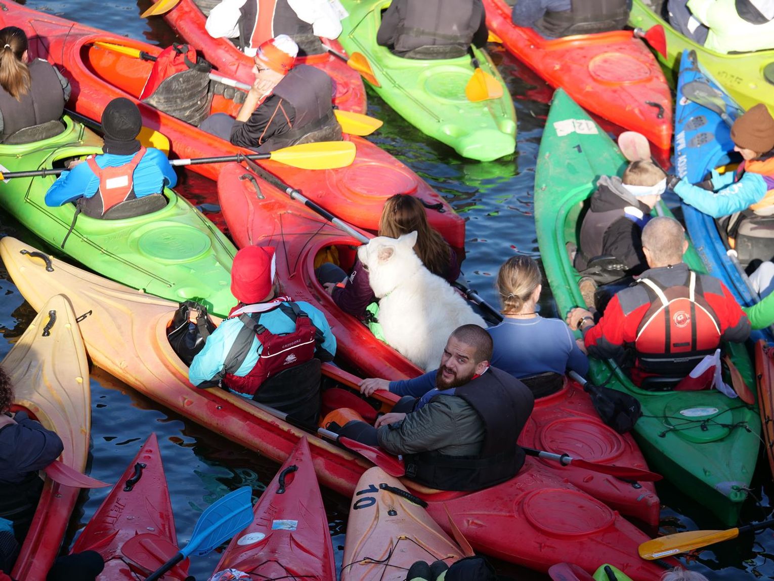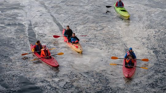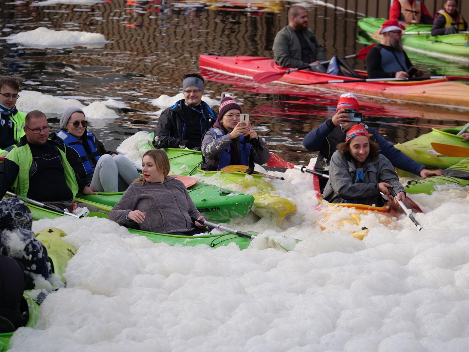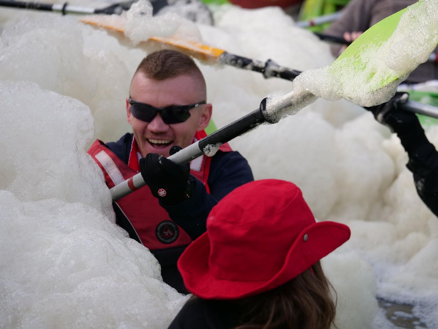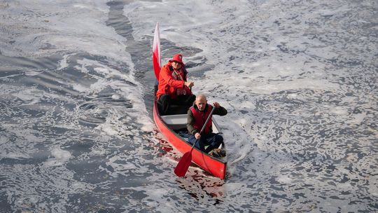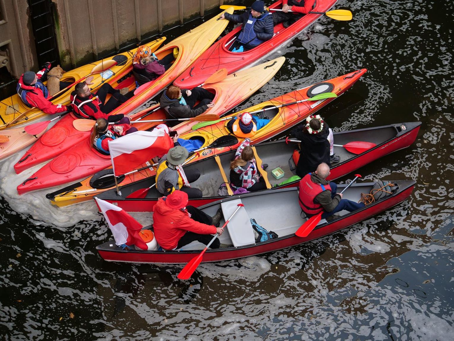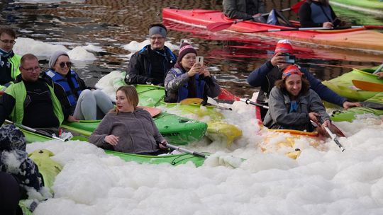 - Uczestnicy spływu przyjechali do nas niemalże z całego kraju. Większość z nich, to stali bywalcy, ale są też nowe twarze. Najmłodsi uczestnicy mają cztery latka, a najstarsi kilkadziesiąt. Oczywiście każdy na starcie otrzymuje kamizelkę i wiosło, a po spływie ciepły posiłek w postaci grochówki, ciepły napój i ciasto. Z racji święta nie mogło zabraknąć patriotycznych pamiątek - powiedział Krzysztof Chałat, komandor spływu.