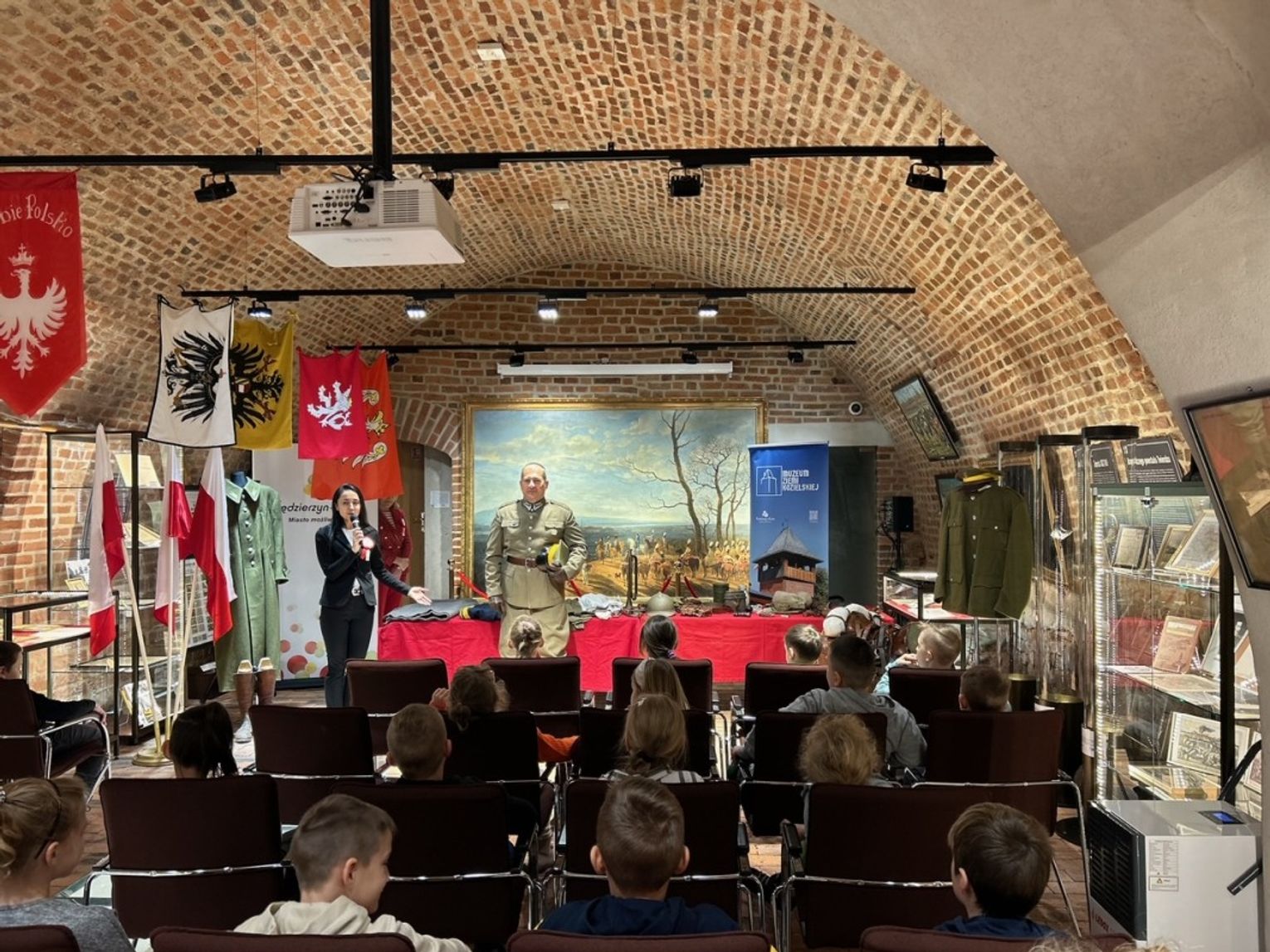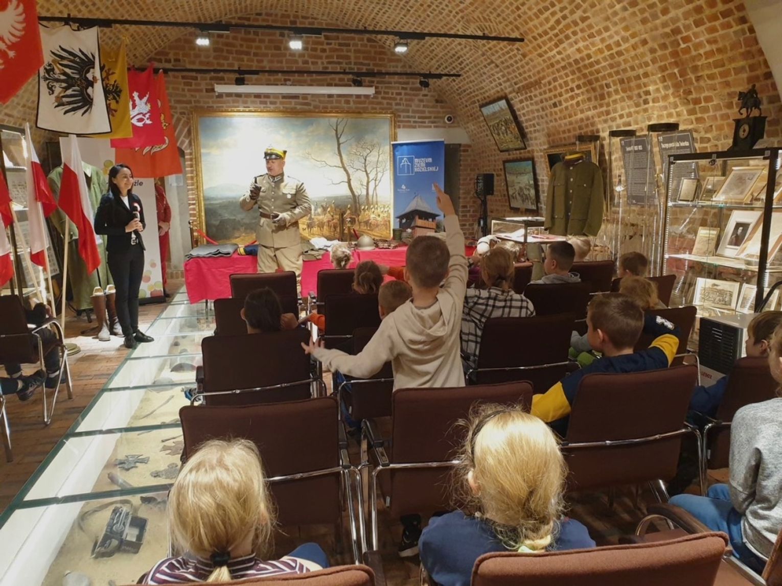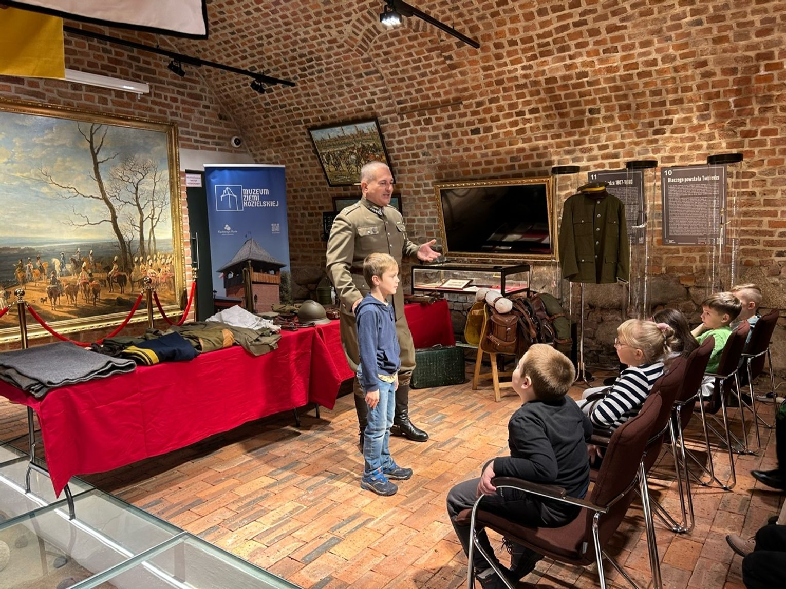 W salach Muzeum Ziemi Kozielskiej zaprezentowano imponujące umundurowanie, w tym charakterystyczną rogatywkę, spodnie, koszulę, wysokie buty, a nawet szable czy menażkę. Dzieci poznały nie tylko poszczególne elementy stroju, ale mogły również ich dotknąć, a nawet przymierzyć.
