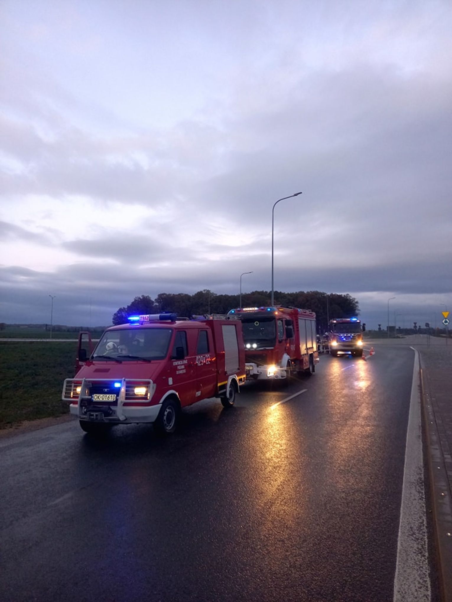 Kierowca nie dostosował prędkości do warunków panujących na drodze, stracił panowanie nad pojazdem, bo nawierzchnia drogi była śliska. W efekcie wypadł z drogi i dachował w rowie. Na miejsce zadysponowano zespół ratownictwa medycznego, patrol policji oraz zastępy Państwowej i Ochotniczej Straży Pożarnej. Kierowcy udzielono pomocy na miejscu, ale nie wymagał hospitalizacji. Funkcjonariusze ukarali go mandatem. Na czas prowadzonych działań ruch w tym miejscu odbywał się wahadłowo.