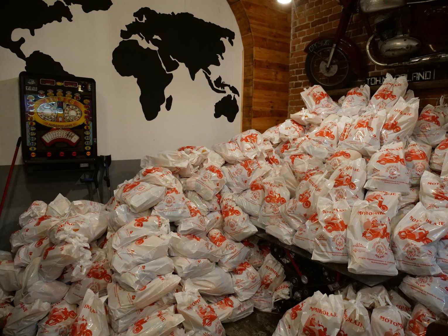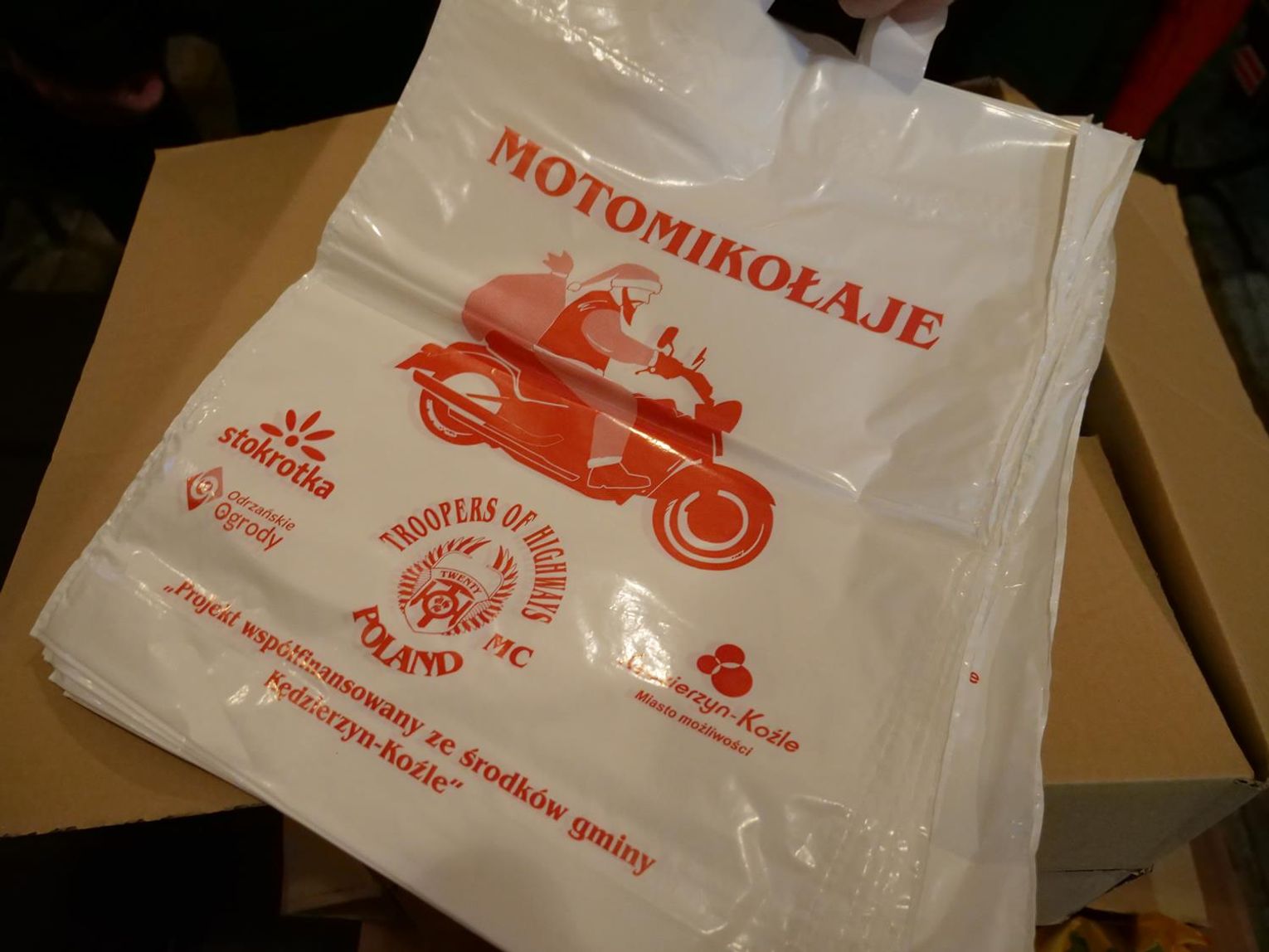 Sami członkowie klubu motocyklowego Troopers Of Highways MC Poland sami nie widzą, która to już edycja, ale jedno jest pewne - to tradycja! Motomikołaje przygotowali paczki ze słodkościami, a następnego dnia (w Mikołajki) rozwiozą je do najmłodszych mieszkańców naszego miasta. Wszystkie paczki o wartości około 31 złotych są takie same i zawierają: jabłka, mandarynki, soczek, chrupki, pierniki, ciastka, wafelki, czekolady, żelki, cukierki oraz gumy rozpuszczalne.