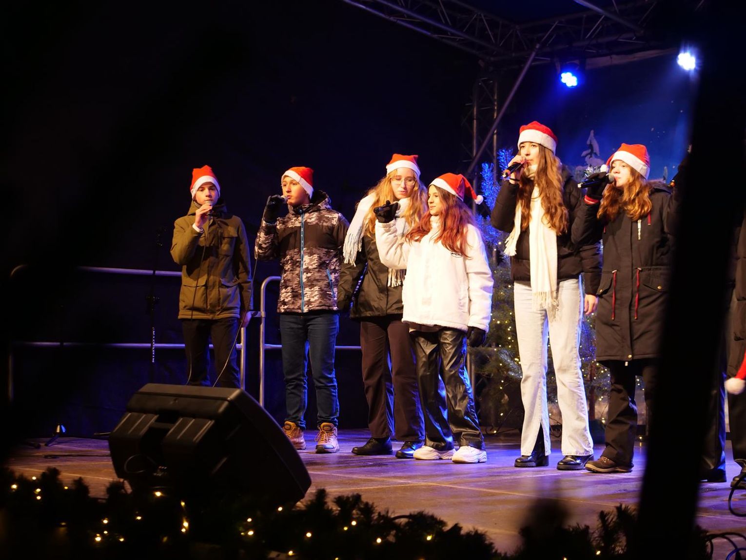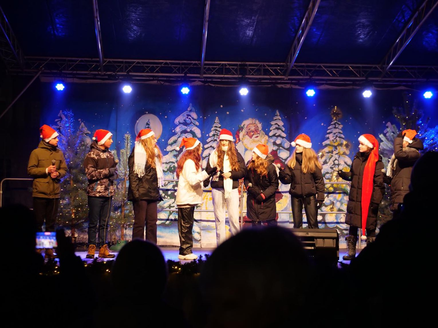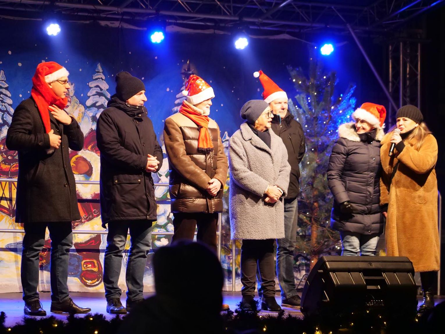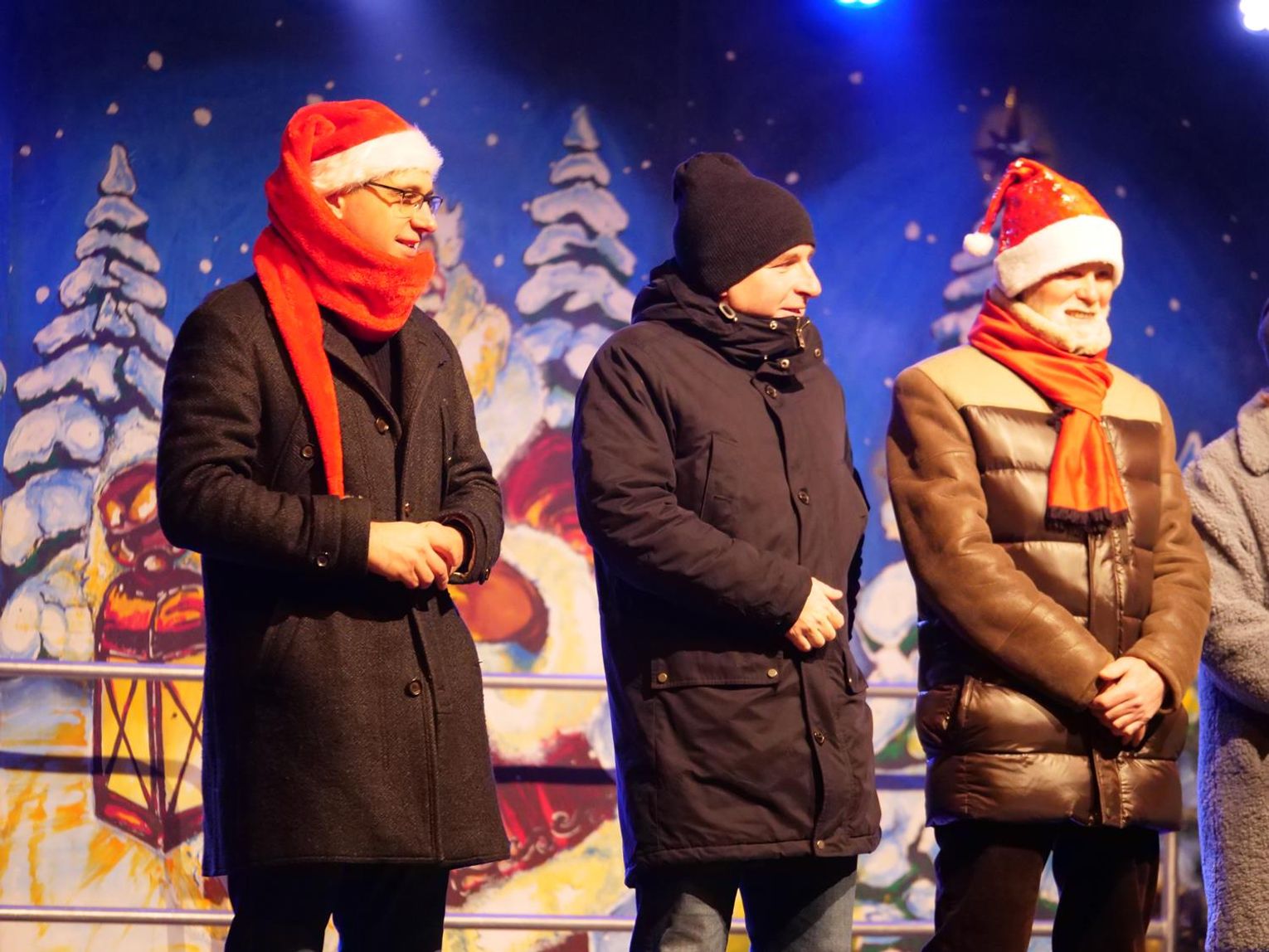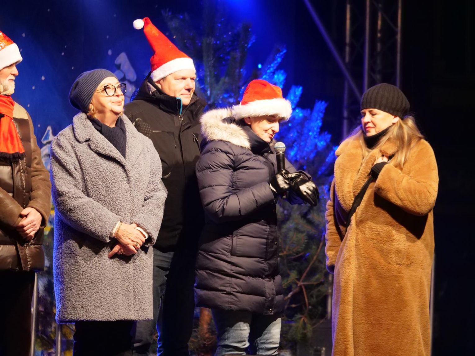 Podczas rozświetlenia choinki głos zabrały władze miasta i powiatu, życząc mieszkańcom wesołych świąt i dosiego roku.