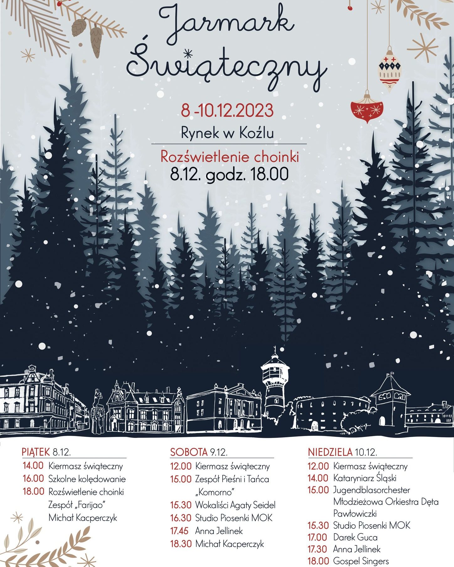 Ruszył bowiem trzydniowy jarmark świąteczny. Na stoiskach możemy skosztować i zakupić przepysznych wyrobów naszych lokalnych rzemieślników, nabyć ręcznie robione ozdoby świąteczne i przyłączyć się do wspólnego śpiewania. Oficjalnie w Kędzierzynie-Koźlu rozpoczął się okres świąteczny, a do tego śnieg, który w tym czasie nie zawsze towarzyszy, sprawia, że czuć magię zbliżających się świąt Bożego Narodzenia. Wraz z rozświetleniem choinki na kozielskim rynku, włączone zostały także światełka w innych częściach miasta - m.in. lokomotywa w sąsiedztwie wiaduktu kolejowego w Śródmieściu, czy plac Rady Europy.