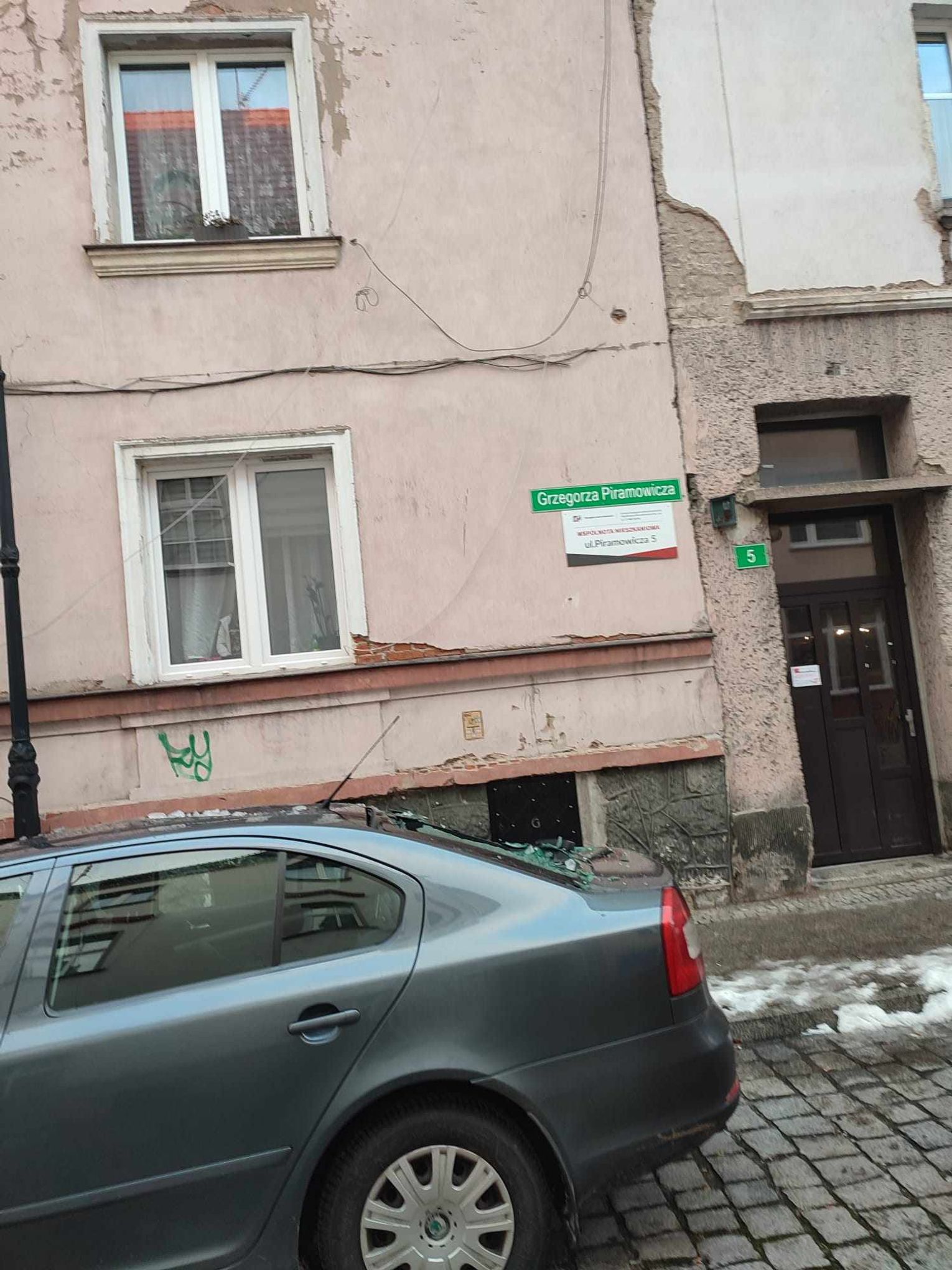 Do zdarzenia doszło w poniedziałek, 11 grudnia około godziny 15. Z dachu budynku przy ul. Piramowicza spadł lód uszkadzając zaparkowany samochód.