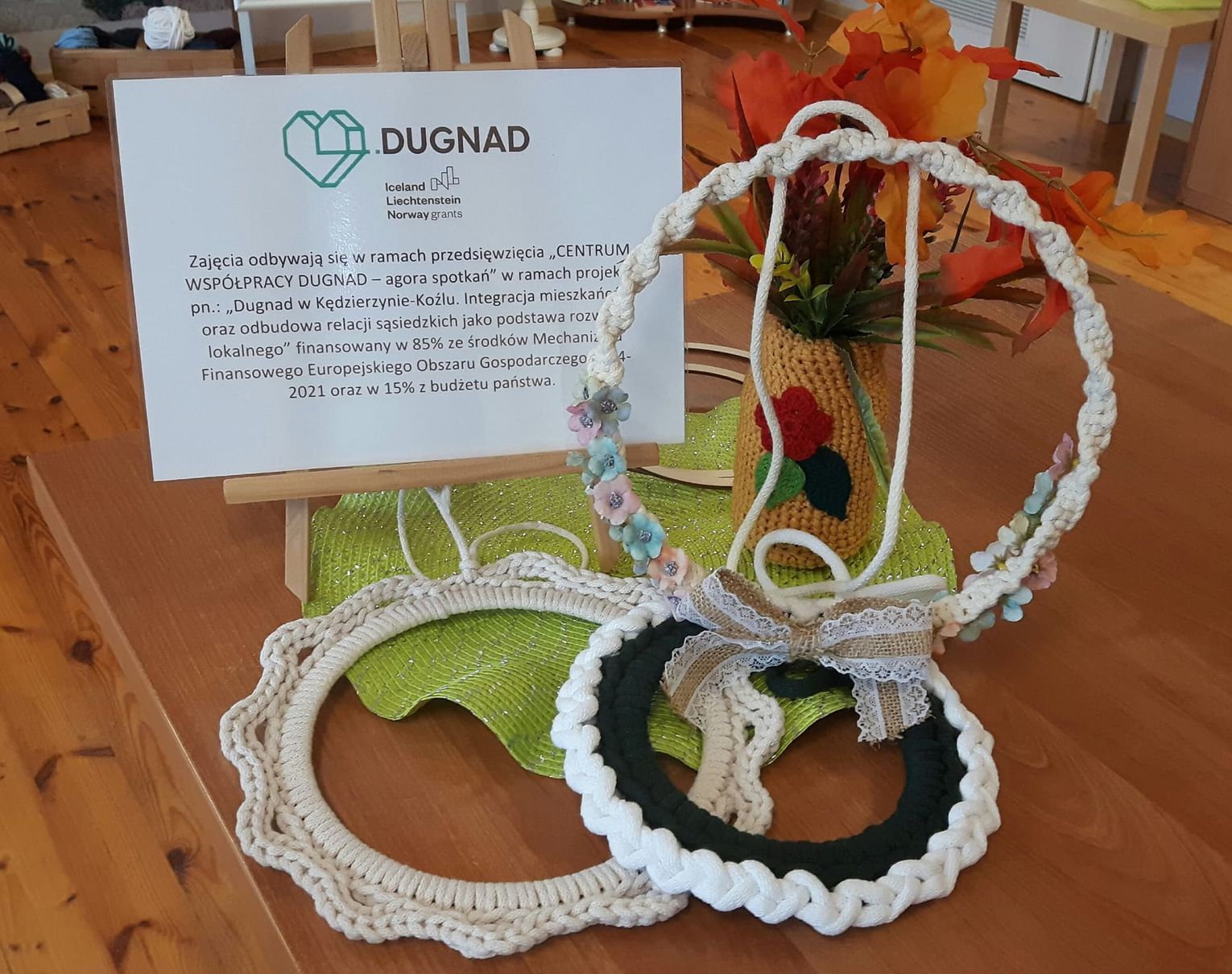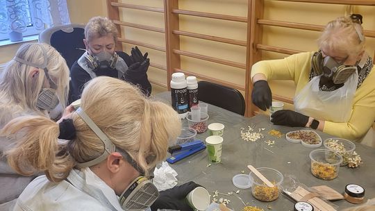 Podopieczni Domu Dziennego Pobytu nr 3 poznali technikę makramy. Zamiast tradycyjnego szydełka to zręczne palce okazały się idealną techniką tworzenia wianków ze sznurka. Z kolei uczestnicy z Domu Dziennego Pobytu nr 1 poznali tajniki wykorzystania specjalnej żywicy. W ten sposób powstały nietuzinkowe ozdoby, które nie tylko pięknie się prezentują, ale pełnią również funkcję użytkową.