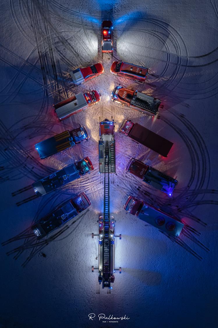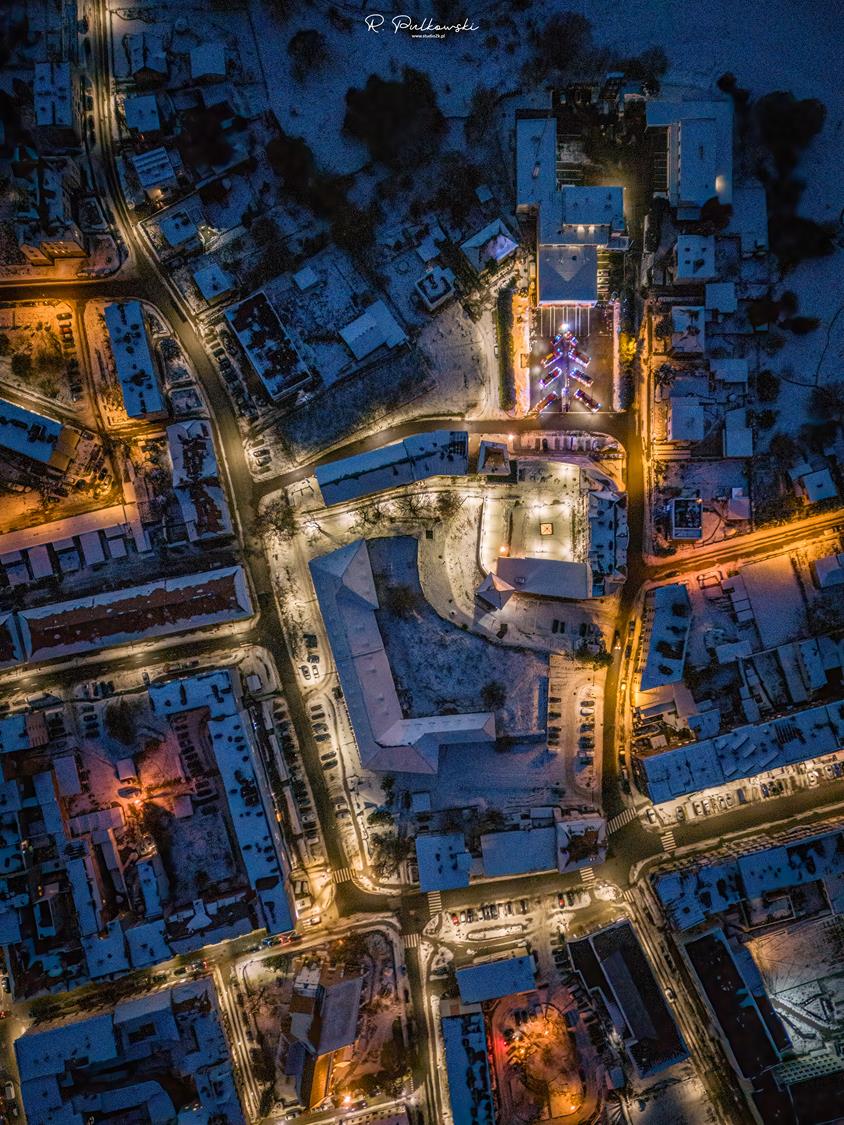 Najlepszy efekt widoczny jest z góry, a do wykonania takiego zdjęcia najlepiej sprawdza się dron. Nawet, jeśli nie ma śniegu, to kolorowe światełka, które na co dzień nie zwiastują niczego pozytywnego, w przypadku tych zdjęć robią niesamowity klimat.