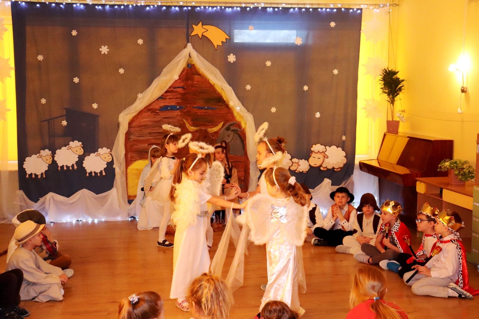 Była to wyjątkowa wizyta, ponieważ przedszkolaki przedstawiły przybyłym gościom swoją wizję widowiska o Bożym Narodzeniu, czyli jasełka.